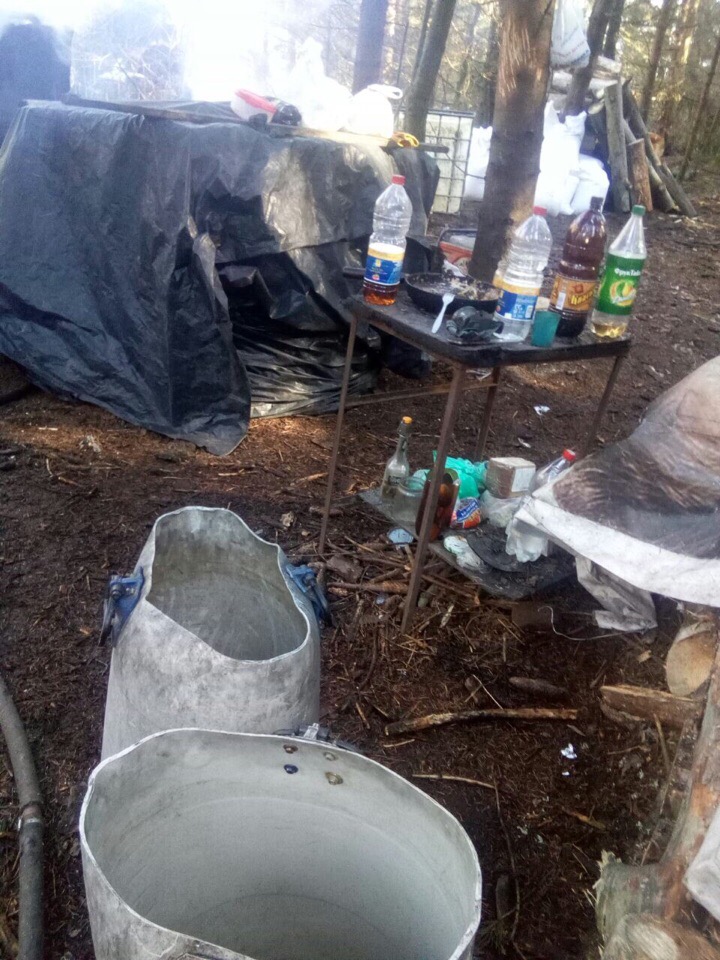 Завод знаходзіўся ў лясной глушы, у бязлюдным месцы. Выдала мужчыну сырая адмерзлая зямля: сляды ад яго аўтамабіля былі дакладна бачныя. Акрамя таго, гэты лес ужо быў знаёмы праваахоўнікам – год таму побач затрымалі іншага самагоншчыка.