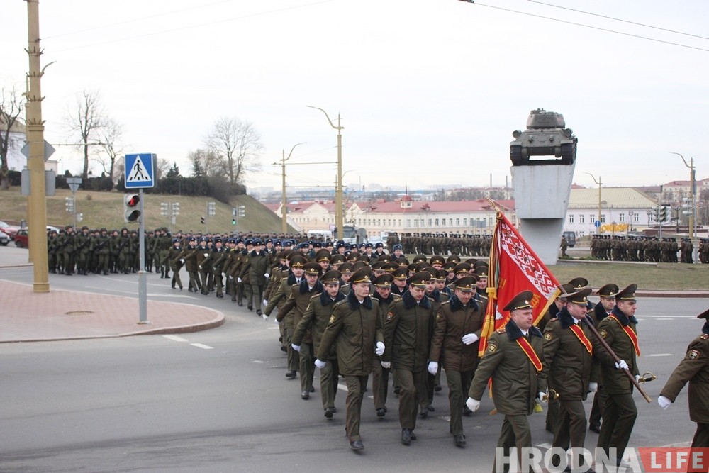 23 лютага, у Дзень абаронцаў Айчыны і Узброеных Сіл Рэспублікі Беларусь, па цэнтральных вуліцах Гродна ўрачыстым маршам прайшлі вайскоўцы Гродзенскага гарнізона. Яны ўсклалі вянкі да помніка-танка ля драмтэатра і да помніка загінулым воінам і партызанам у парку Жылібера.