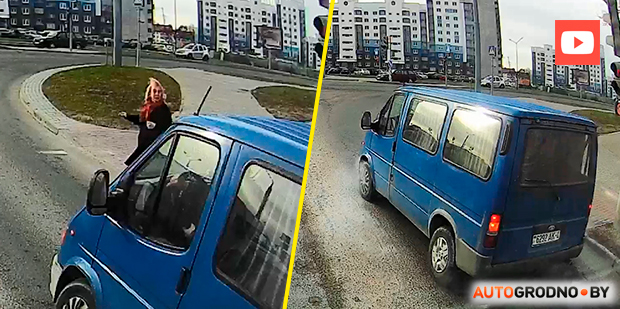 1 секунда прайшла паміж выхадам жанчыны на дарогу і тым момантам, калі міма яе праехаў Ford Transit. Кіроўца мікрааўтобуса паспеў пасігналіць жанчыне і ў гэтае ж імгненне выціснуў педаль тормазу. Па дыме з-пад колаў гэта выразна відаць.