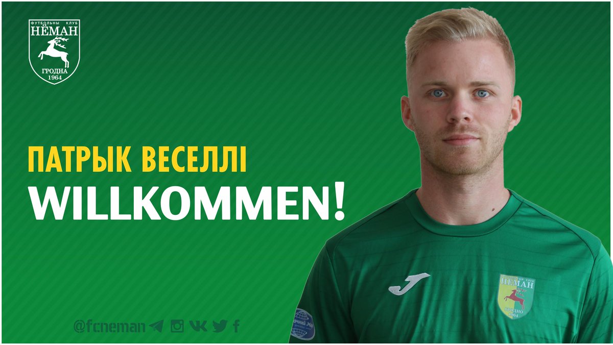 3 красавіка гродзенскі “Нёман” абвясціў аб падпісанні 25-гадовага аўстрыйскага абаронцы Патрыка Веселлі. Кантракт з футбалістам разлічаны на адзін год.