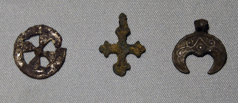 Апошнія, дарэчы, былі знойдзеныя на падлозе спаленага дому. Разнастайныя падвескі і кальца адлюстроўваюць не толькі змену моды, але і вераванні жыхароў Гродна.
