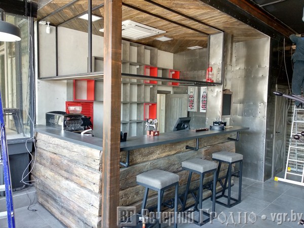 Будучы лофт-бар разлічаны на 45 месцаў – можна сядзець за стойкамі або на мяккіх канапах са столікамі.