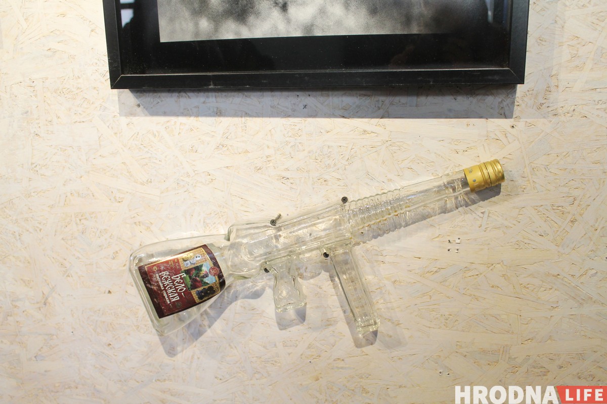 Фатограф паказвае гродзенскія шклянкі са Сталіным і бутэльку гарэлкі ў выглядзе аўтамата і разважае пра тое, “як камічна можна падыходзіць, прэпараваць і прадаваць вайну”. І спадзяецца, што праз 10-20 гадоў на вайне можна будзе зарабляць грошы.