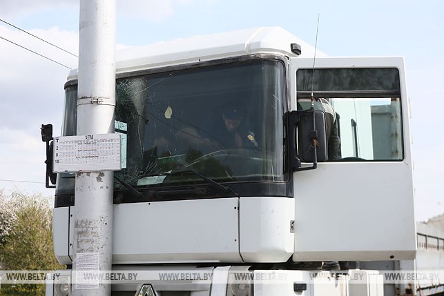 Інцыдэнт адбыўся непадалёк ад камбіната будаўнічых матэрыялаў. Па словах відавочцаў, прыпаркаваны грузавік нечакана пакаціўся, кіроўцы ў той момант за рулём не было.