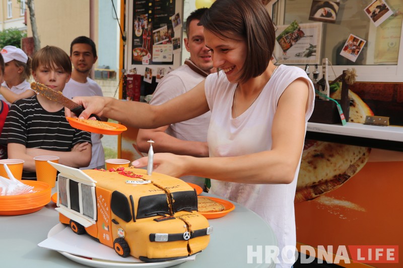 Паветраныя шарыкі і торт у выглядзе фургончыка 20 чэрвеня віталі гасцей на дні нараджэння гродзенскага піца-трака. Павіншаваць піцаёлаў прыйшлі сябры з суседніх офісаў, мастакі, супрацоўнікі дзіцячага хоспіса і жыхары бліжэйшых дамоў. “Мы ўсіх гэтых людзей ведаем, любім і рады бачыць ля нашага піца-трака сёння і штодня”, – прызнаўся саўладальнік піцатрака, піцаёла Павел Максімчык.
