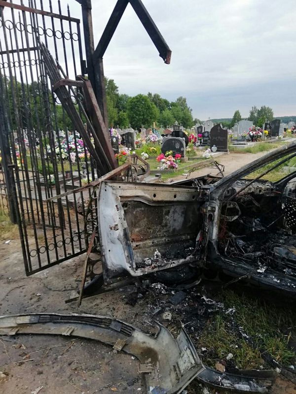 Сёння каля пяці раніцы паблізу в. Германішкі кіроўца наехаў на агароджу мясцовых могілак, месца здарэння пакінуў. Аўтамабіль загарэўся. Ратавальнікаў выклікаў сведка. Транспартны сродак моцна пашкоджаны агнём. Праваахоўнікі праводзяць аператыўна-вышуковыя мерапрыемствы па ўсталяванні асобы кіроўцы, піша voran.by.