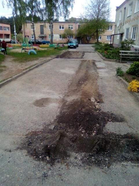 Аб праблеме напісаў мясцовы жыхар. Яшчэ 8 мая ў двары па вул. Волкава, 8 выразалі асфальт для рамонту. Кажуць, для гэтага выбралі самы роўны і цэлы ўчастак дарогі. Па стане на 18 жніўня ямы ніхто так і не залатаў.