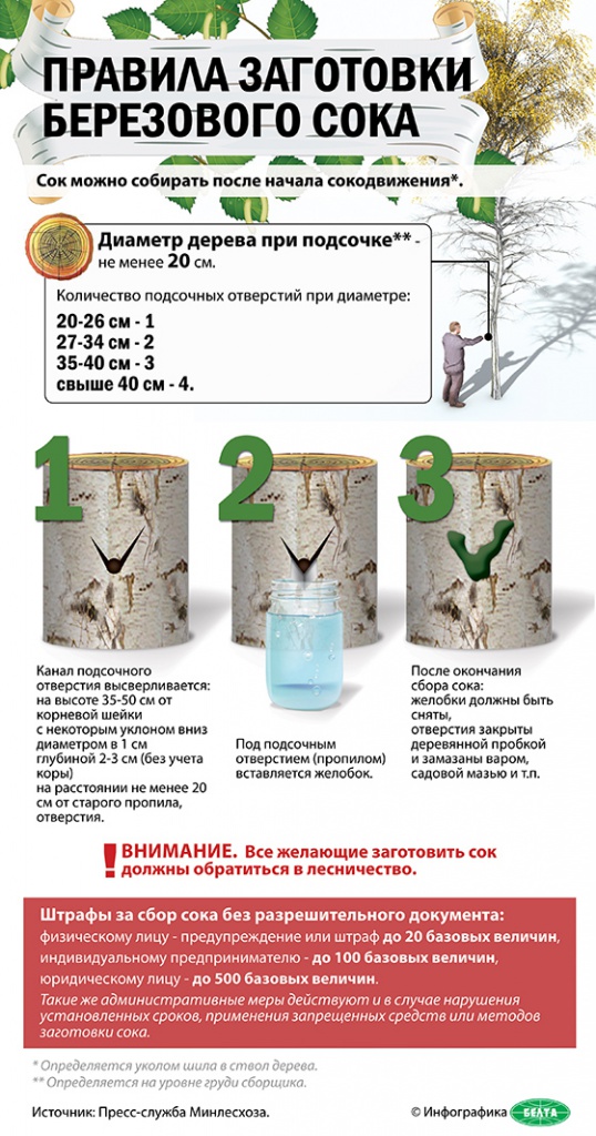 Каб здабыць сок самастойна, трэба трэба звярнуцца ў лясгас. Вам пакажуць, дзе і як правільна нарыхтаваць сок. Інакш можна патрапіць на “адміністрацыйку”.