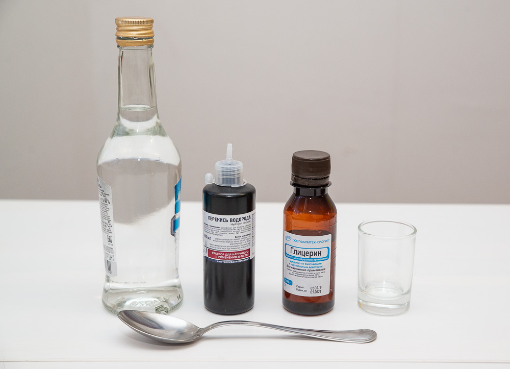 Зыходзячы з рэкамендуемага СААЗ рэцэпту, для аб’ёму ў 350 мл (менавіта такую ​​бутэльку гарэлкі зручна купляць) трэба каля 5 мл гліцэрыны і 15 мл перакісу вадароду. Гэта як раз чайная і сталовая лыжка. Дарагія гатункі гарэлкі, відавочна, купляць не варта.