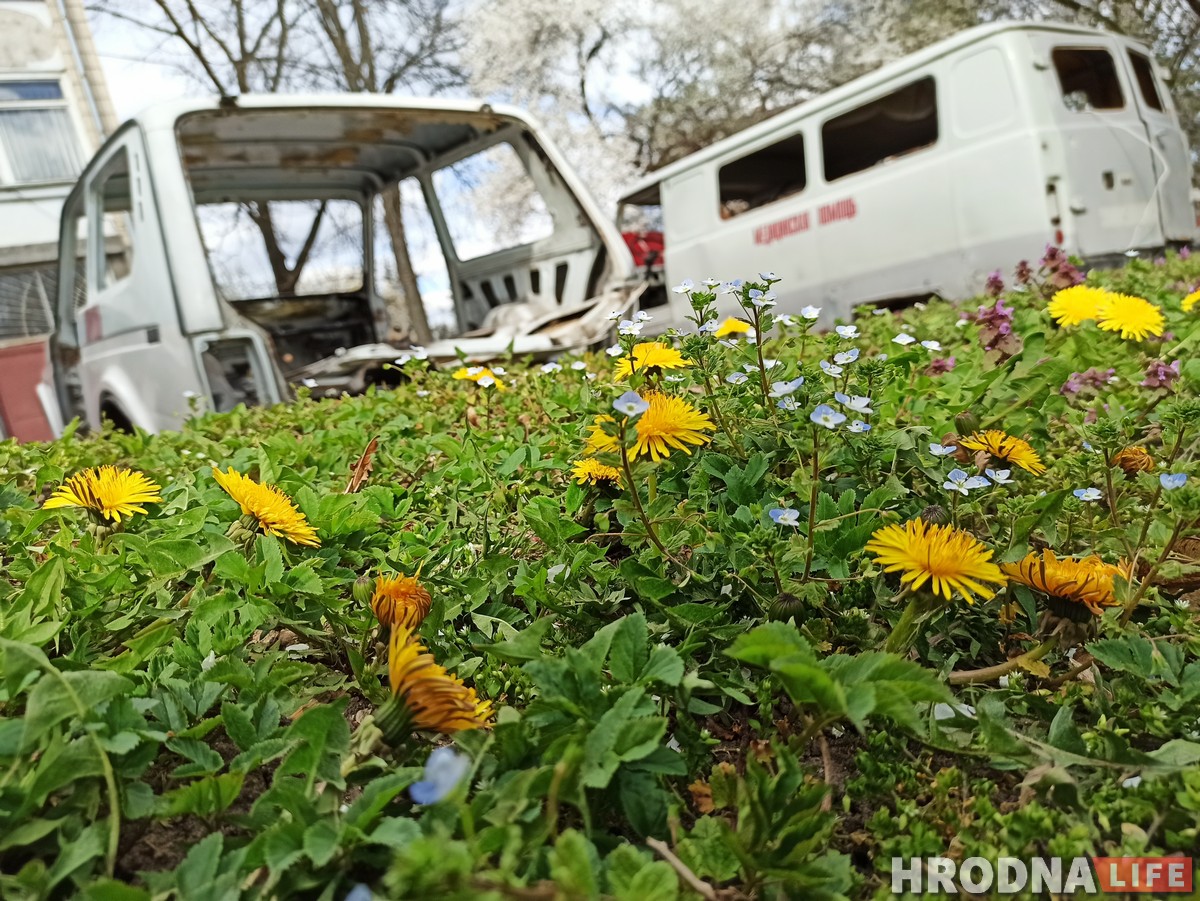 Пачынаць здымкі можна проста зараз. На фоне квітнеючых вішань старыя аўтамабілі хуткай дапамогі выглядаюць асабліва пераканаўча. Hrodna.life упэўніўся – выглядае не горш, чым у галівудскіх фільмах.