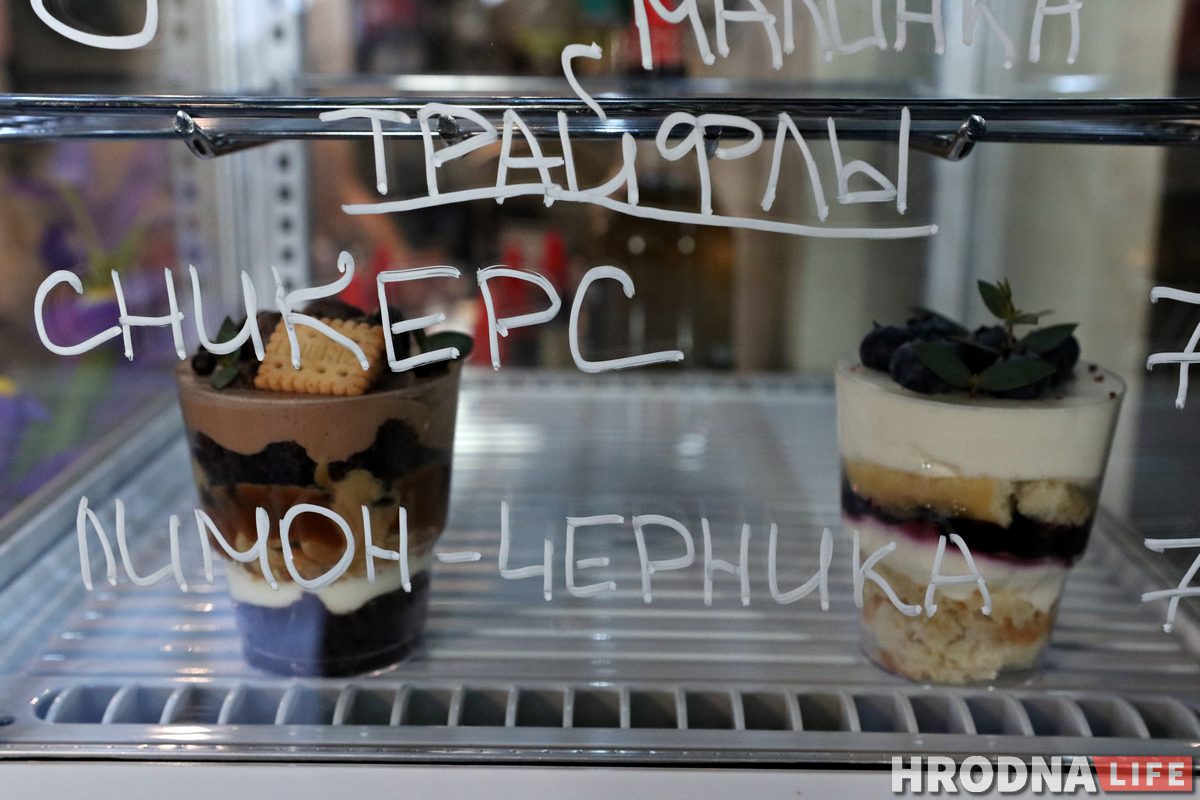 «Мы прапануем новы падыход да кліента. Кавярня пачынае працаваць з 7:30 раніцы. Многія ідуць на працу або вучобу і могуць забегчы да нас. У меню кава, смузі, гарбата і аўтарскія дэсерты. Кава наша брэндаваная – пад сваім лагатыпам. Гэта той жа «Single Step» [беларускі брэнд свежаабсмажанай кавы, з якімі працуюць многія кавярні ў Гродне – рэд.], але ён абсмажваецца спецыяльна пад нас», – дадаў Аляксей.