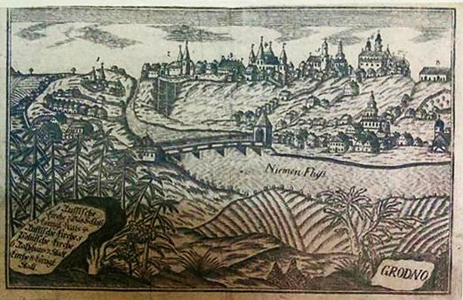 Гравер Юрый Якавенка знайшоў выяву ў антыкварнай краме ў Берліне. Там было дзве гравюры з выявай Гродна, ён папрасіў іх забраніраваць. Адна з іх яго не дачакалася. А іншую мастак выкупіў і прывёз у Гродна.