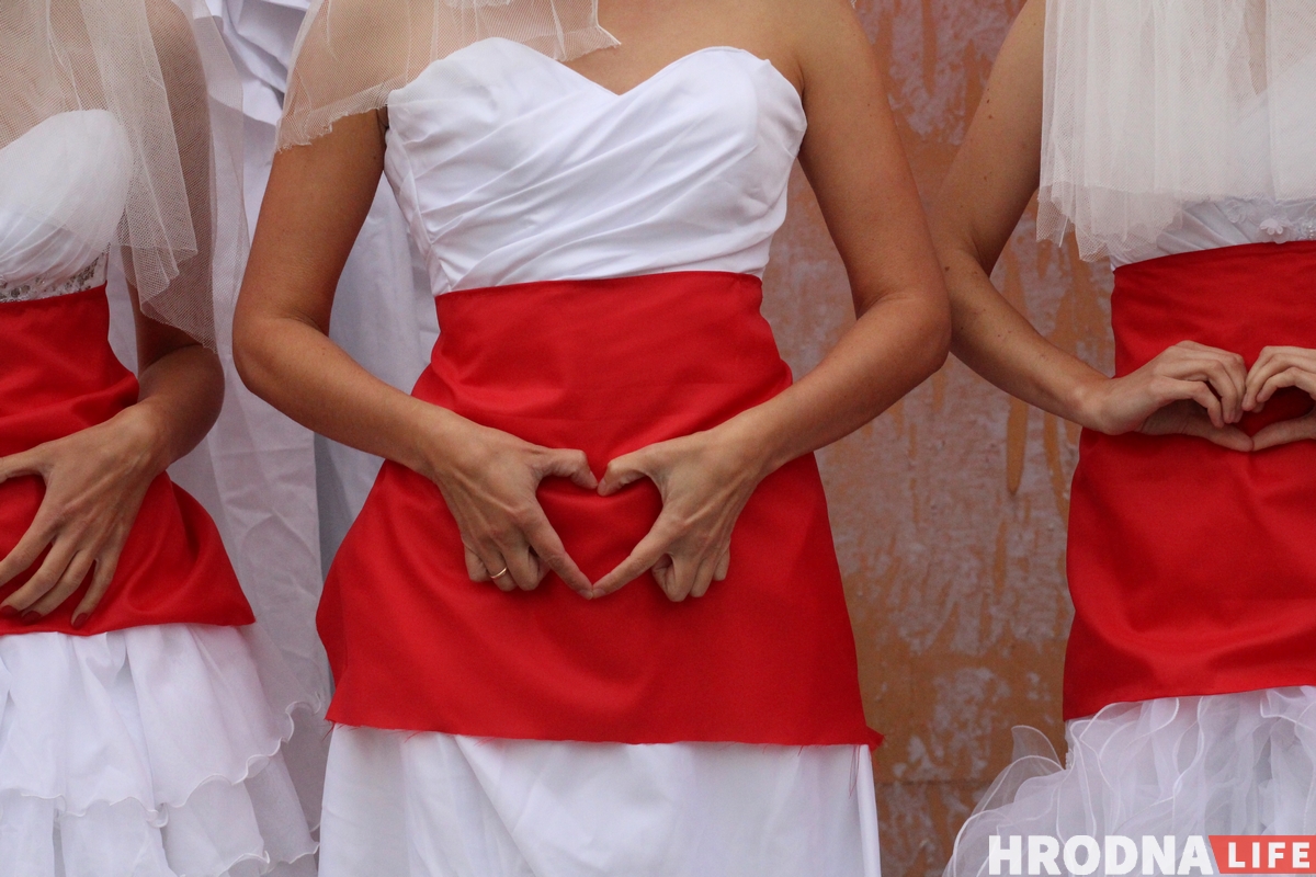 10 гродзенак выйшлі 17 верасня на акцыю за Беларусь у вобразе нявест, апранутых у бел-чырвона-белыя сукенкі. Яны выбралі гэты вобраз, таму што гэта чысціня і нявіннасць. Ды і іншых спосабаў, акрамя як праз мастацтва, у Беларусі пратэставаць не засталося, лічаць яны.