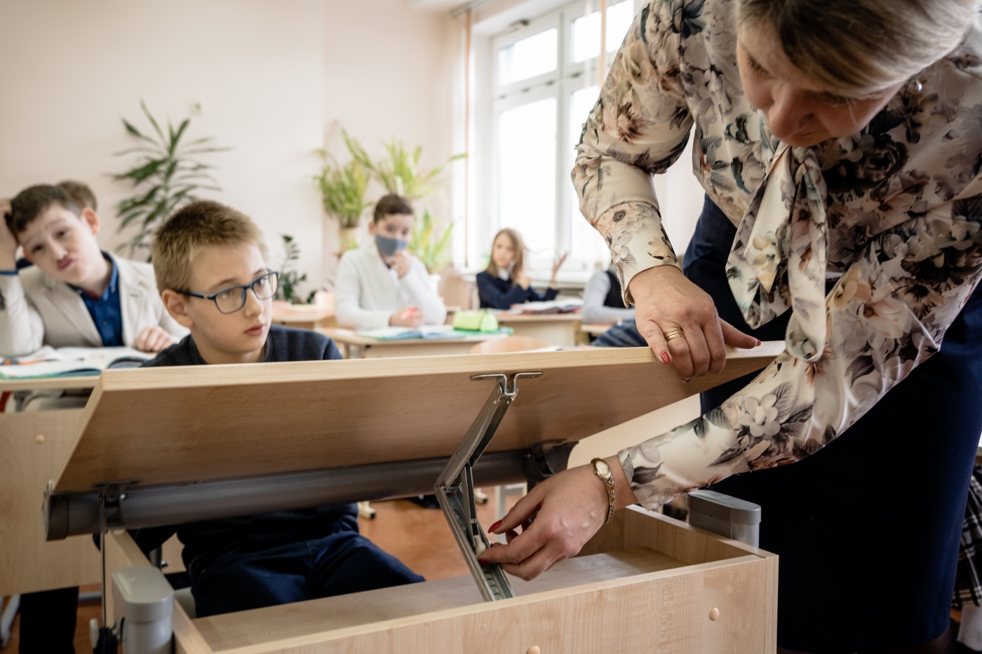 – Благодаря тому, что он общается с теми, кому не нужна опора, он старается показать свою самостоятельность. Говорит: «Я буду стоять сам! Я буду делать сам!» Они тянутся за сверстниками. Также в школе установлены комфортные парты, работает лифт, это очень удобно.