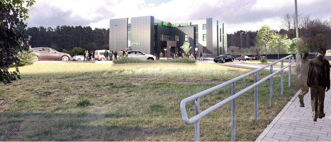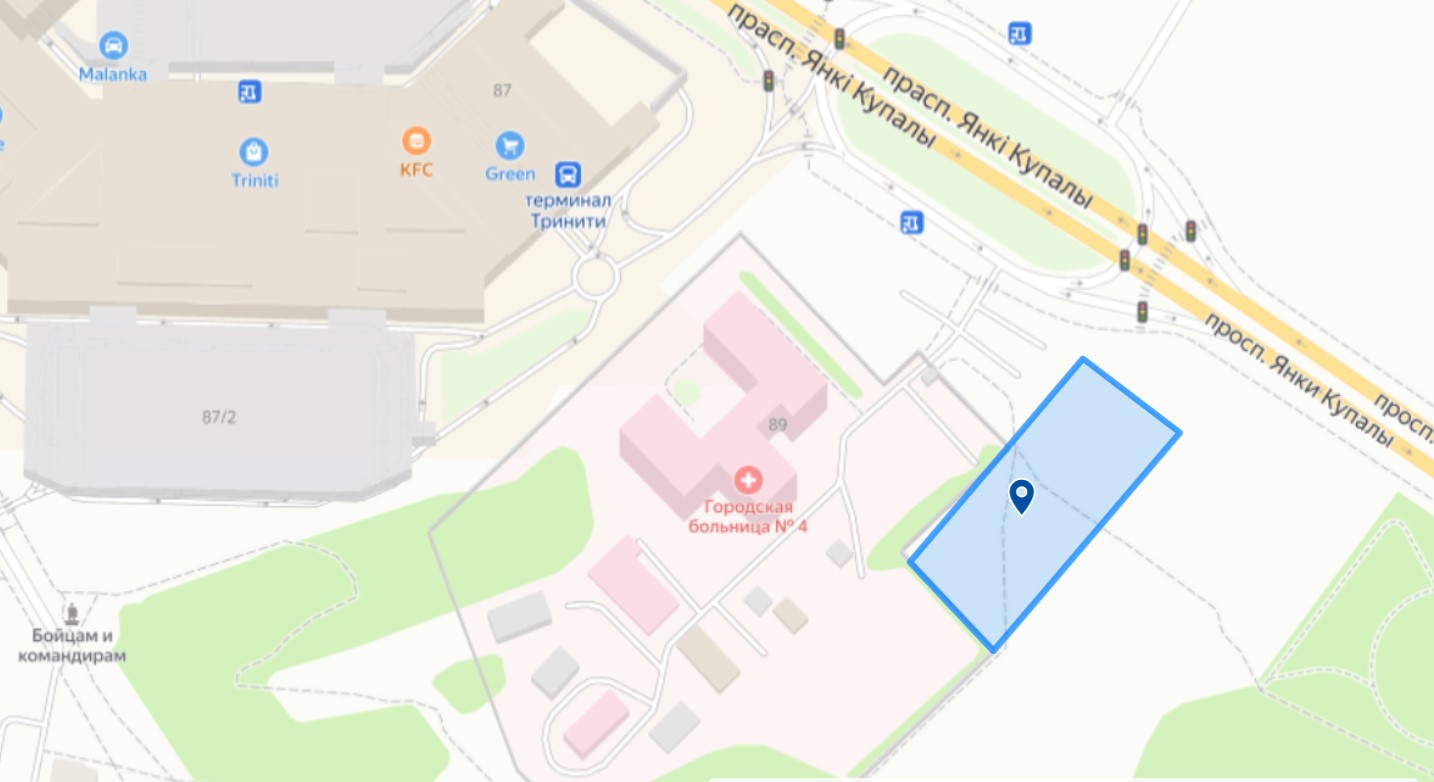 Участак з аднаго боку будзе ўшчыльную прымыкаць да плота 4-й бальніцы. Уезд на тэрыторыю медцэнтра будзе з гасцявой паркоўкі бальніцы. Галоўны фасад новага медцэнтра арыентаваны на праспект Янкі Купалы.