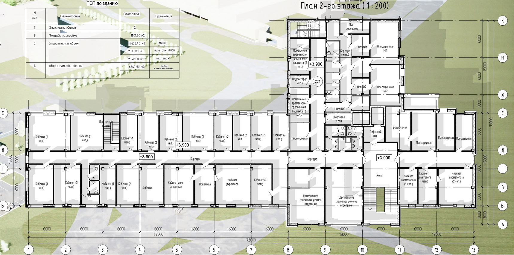 Будынак новага медцэнтра будзе двухпавярховым, каркаснага тыпу, з падвалам і тэхнічным паверхам. Вонкавыя ненясучыя сцены ўзвядуць з газасілікатных блокаў, унутраныя перагародкі будуць цагляныя, фасады – з пліт керамаграніта і клінкернай цэглы.