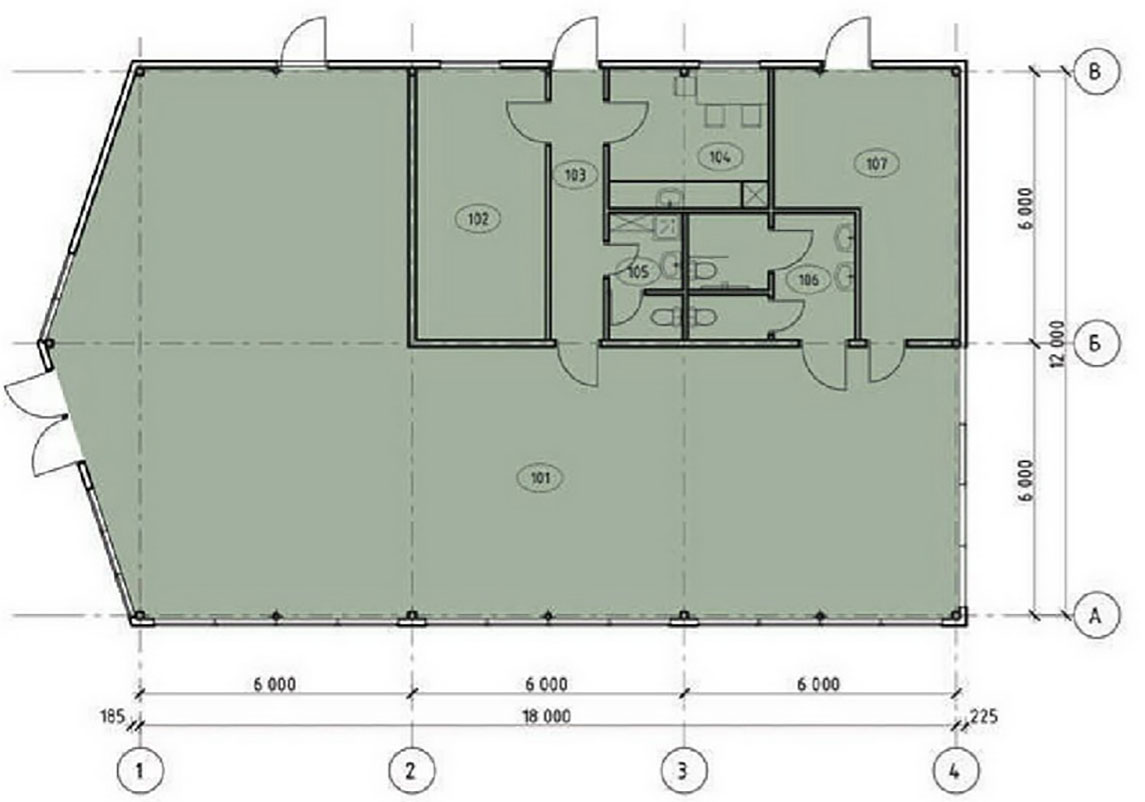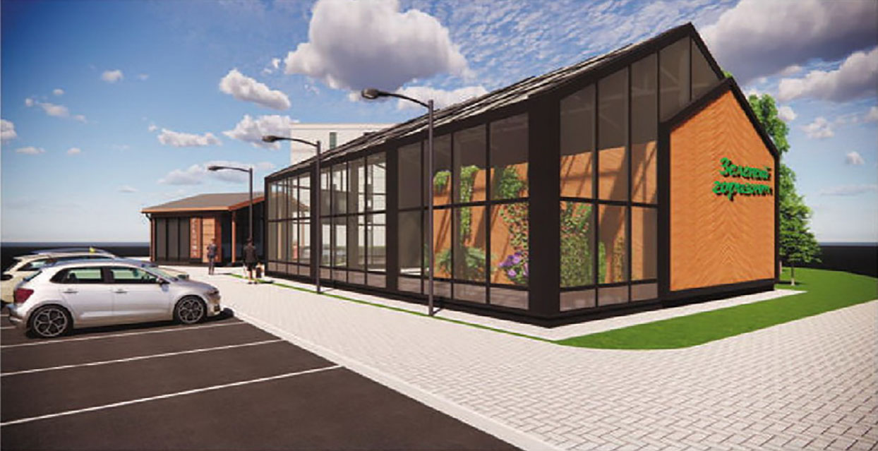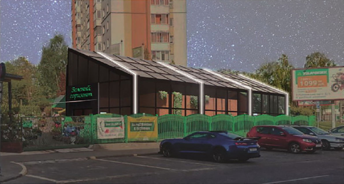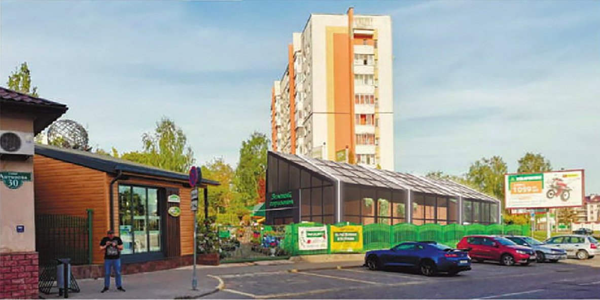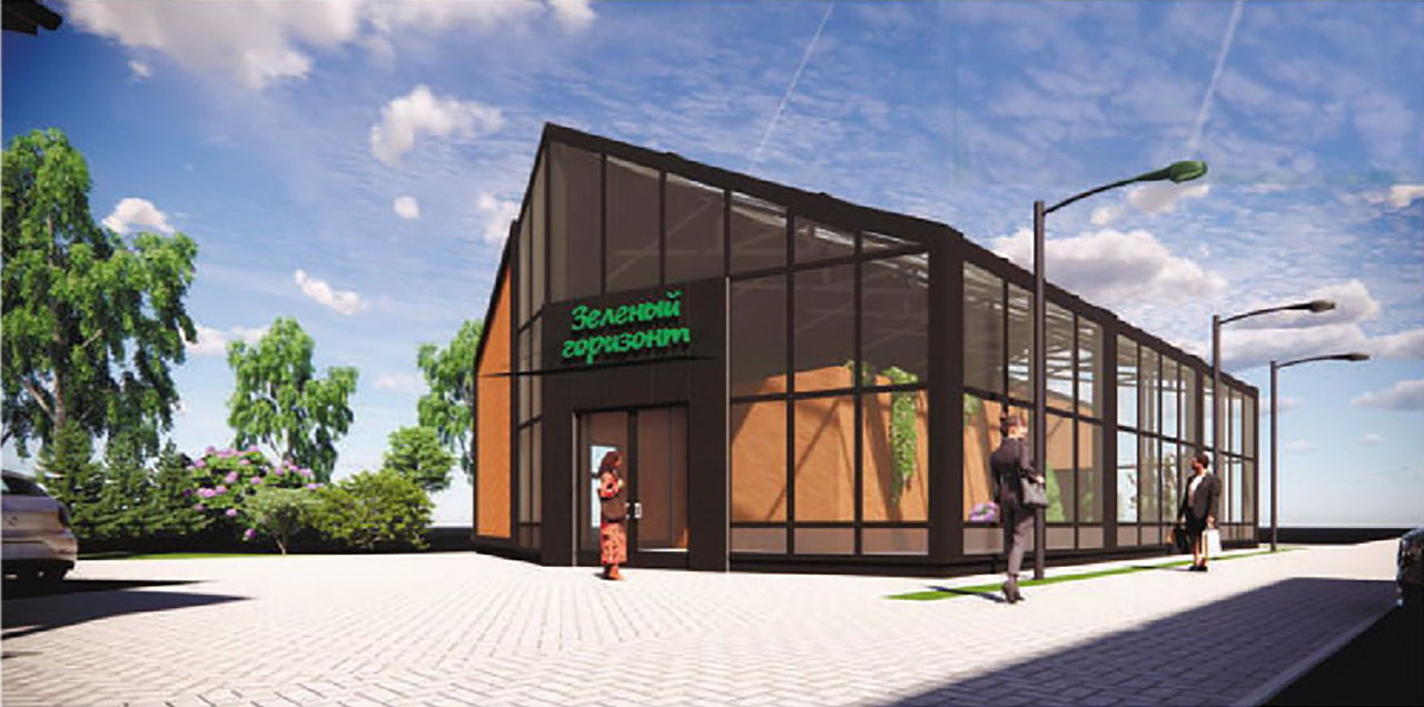 Асноўную частку будынка зойме гандлёва-выставачная зала з зялёнымі раслінамі плошчай у 158 кв. м. Яна будзе ў выглядзе зашклёнай аранжарэі. У астатняй частцы размесцяць дапаможныя памяшканні: кабінет, санвузлы, камора, пакой прыёму ежы.