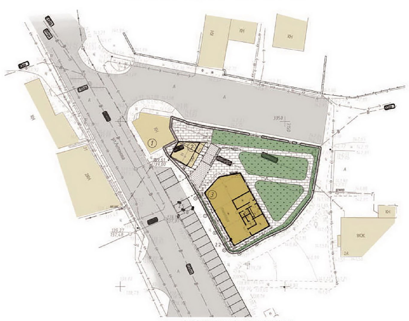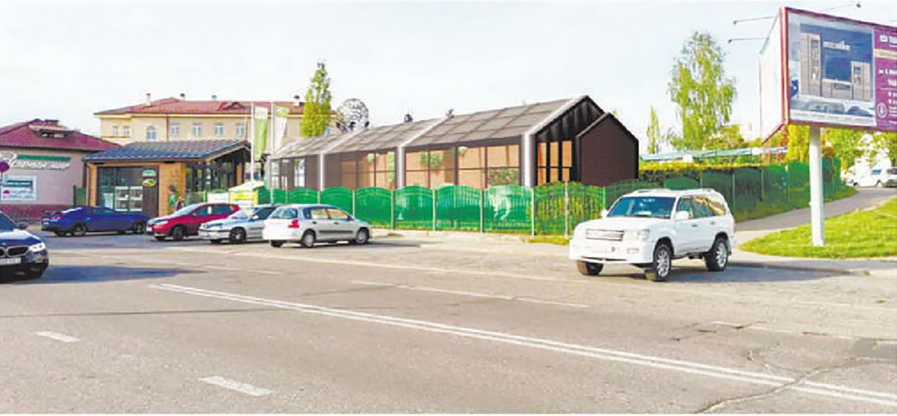 Новы будынак плануюць аднапавярховым, ламанай формы ў плане з габарытнымі памерамі 18х12 м. Агульная плошча забудовы – 233 кв. м. Існуючыя будынкі крамы зносіць не будуць. Праект прадугледжвае функцыянальнае дзяленне ўчастка ва ўвязцы з суседняй забудовай, з улікам пешаходных сувязяў і праездаў для абслугоўвання аб’екта.