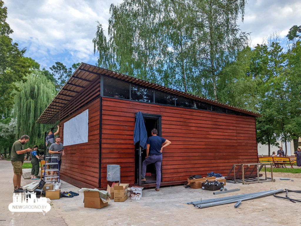 Павільён ад гродзенскага мясакамбіната размясцілі ў парку Жылібера. Кропка грамадскага харчавання з’явілася паміж вялікім фантанам і прыпынкам грамадскага транспарту “Тэатр лялек”.