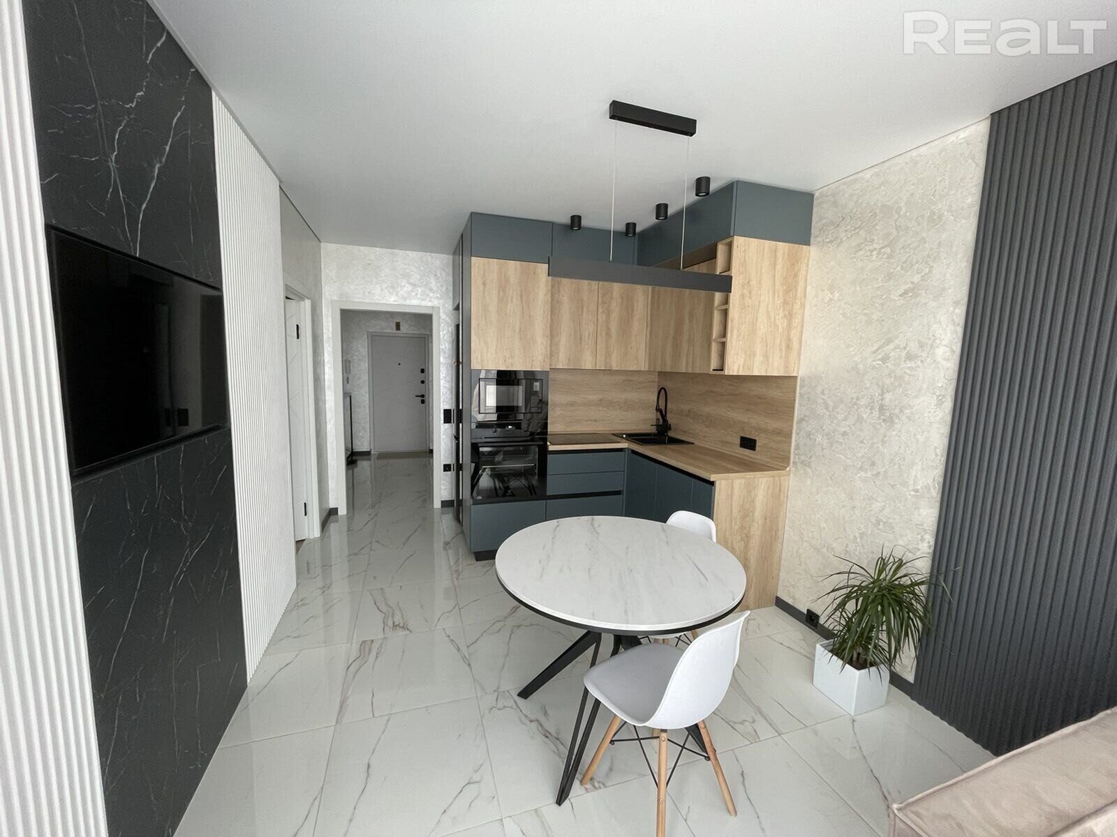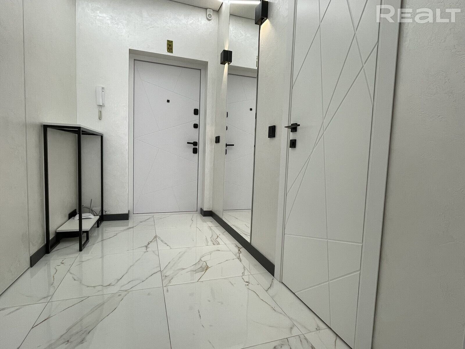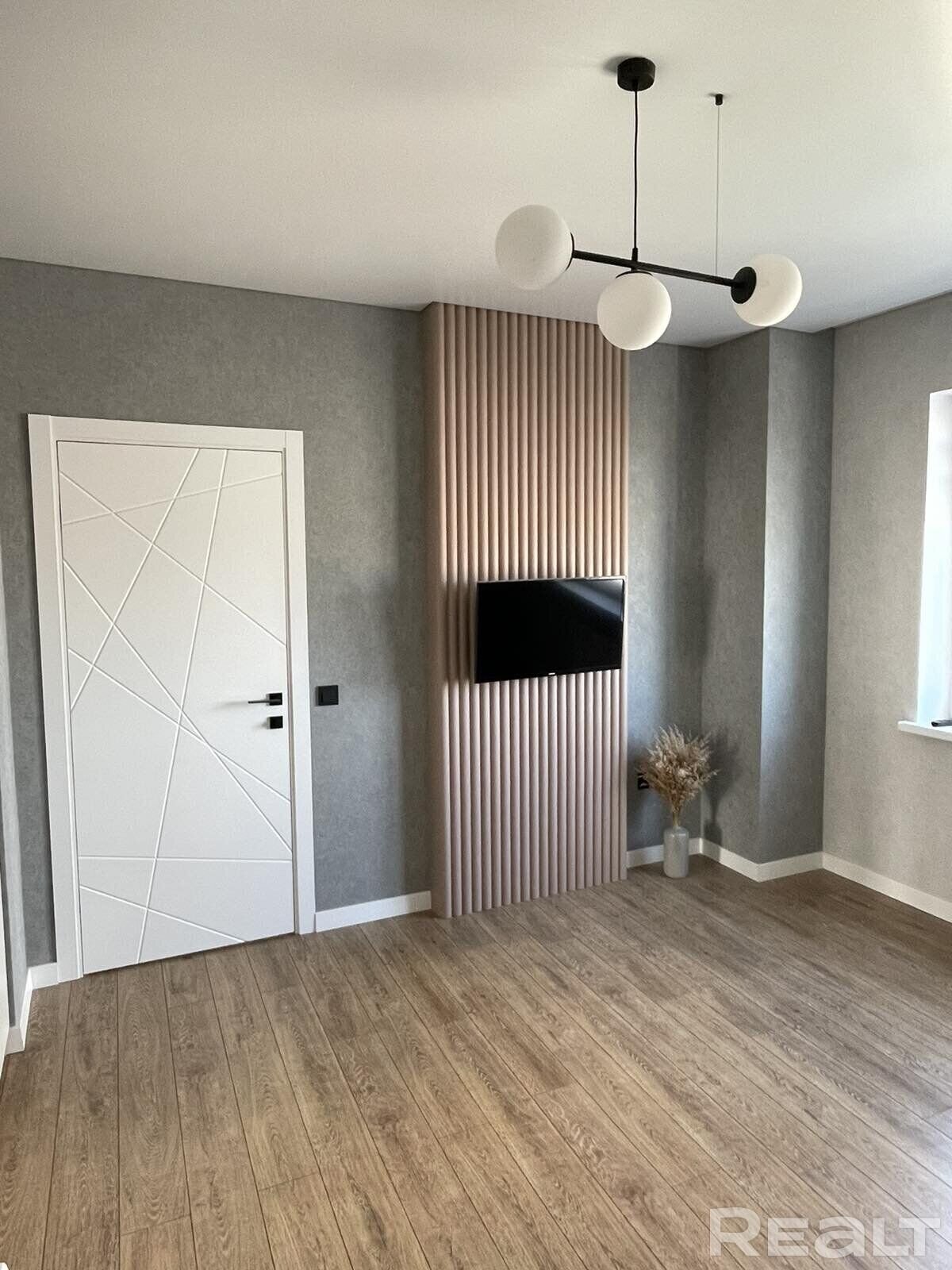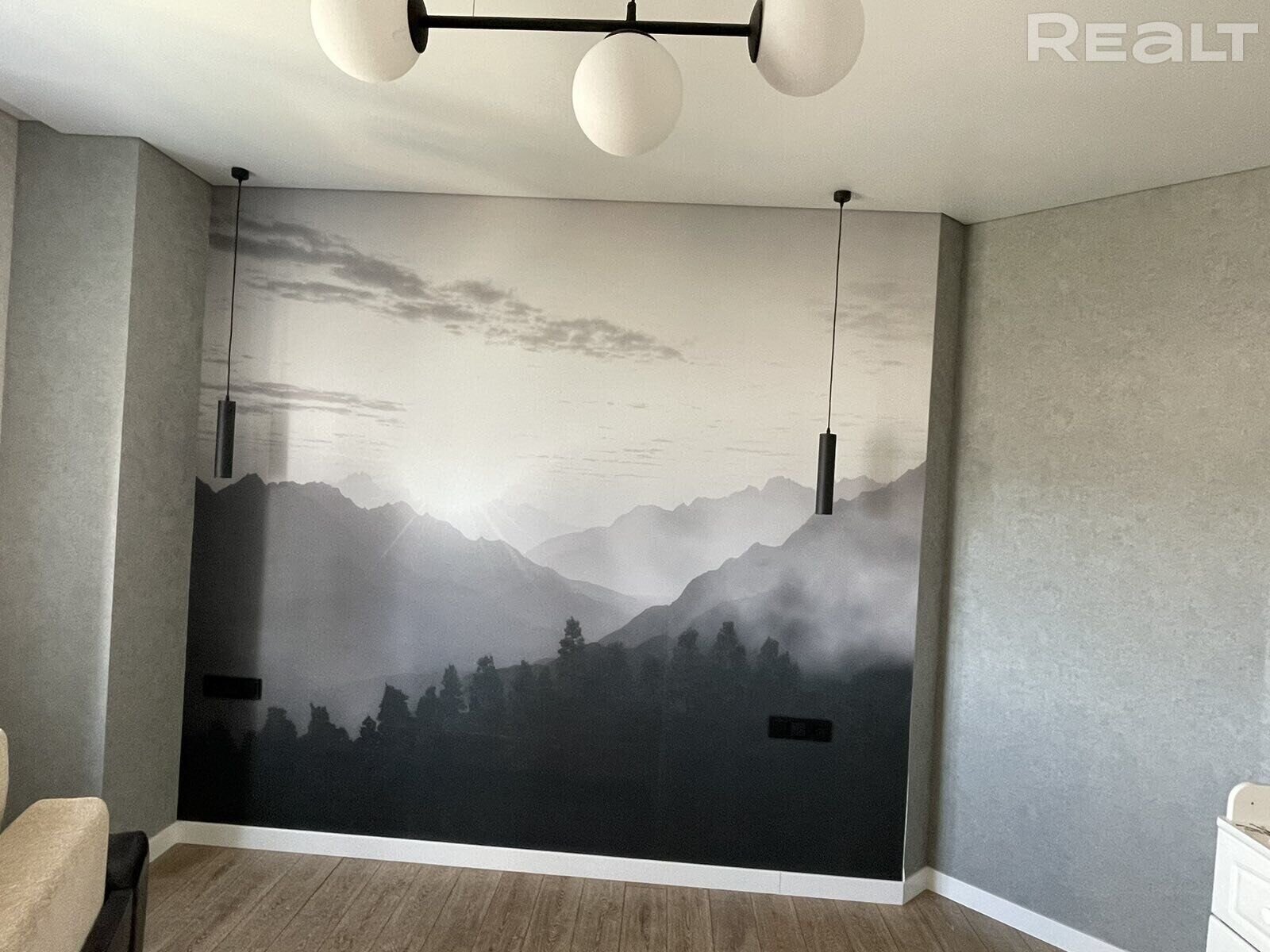 Плошча кватэры – 42, 5 кв.м. Яна размешчана на шостым паверсе 16-павярхоўкі. У кватэры сучасны рамонт, зроблены ў 2023 годзе. Дызайн мінімалістычны, пераважаюць адценні шэрага. На адной са сцен фоташпалеры чымсьці нагадваюць туманны лес з Twin Peaks.