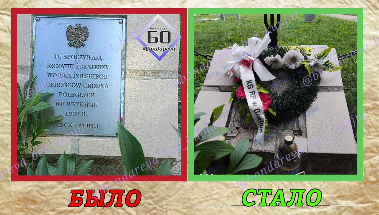 На вайсковых могілках у Гродне ёсць пахаванні польскіх, нямецкіх і расійскіх жаўнераў. Польскія адносяцца да савецка-польскай вайны, іншыя да Першай сусветнай. Таксама на могілках пастаўлены помнік рэпрэсаваным польскім афіцэрам з памятнай шыльдай, аднак цяпер шыльду знялі, прыкрыўшы гэтае месца вянком, паведамляе «Свабода».