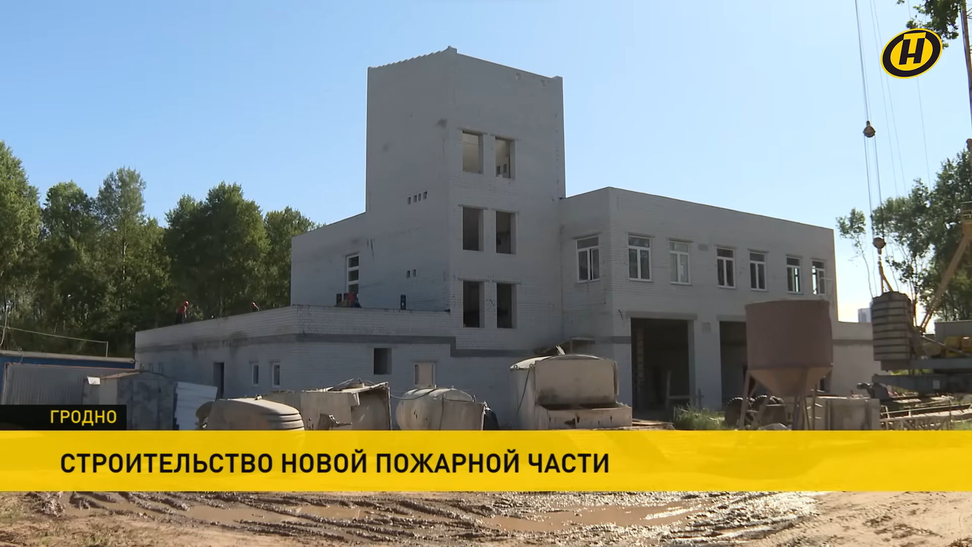 Будаўніцтва пажарнай частцы ў Гродне. Скрыншот тэлеканала “АНТ”