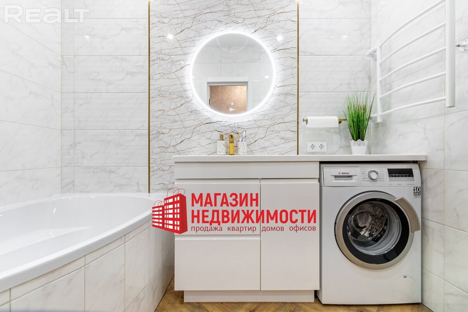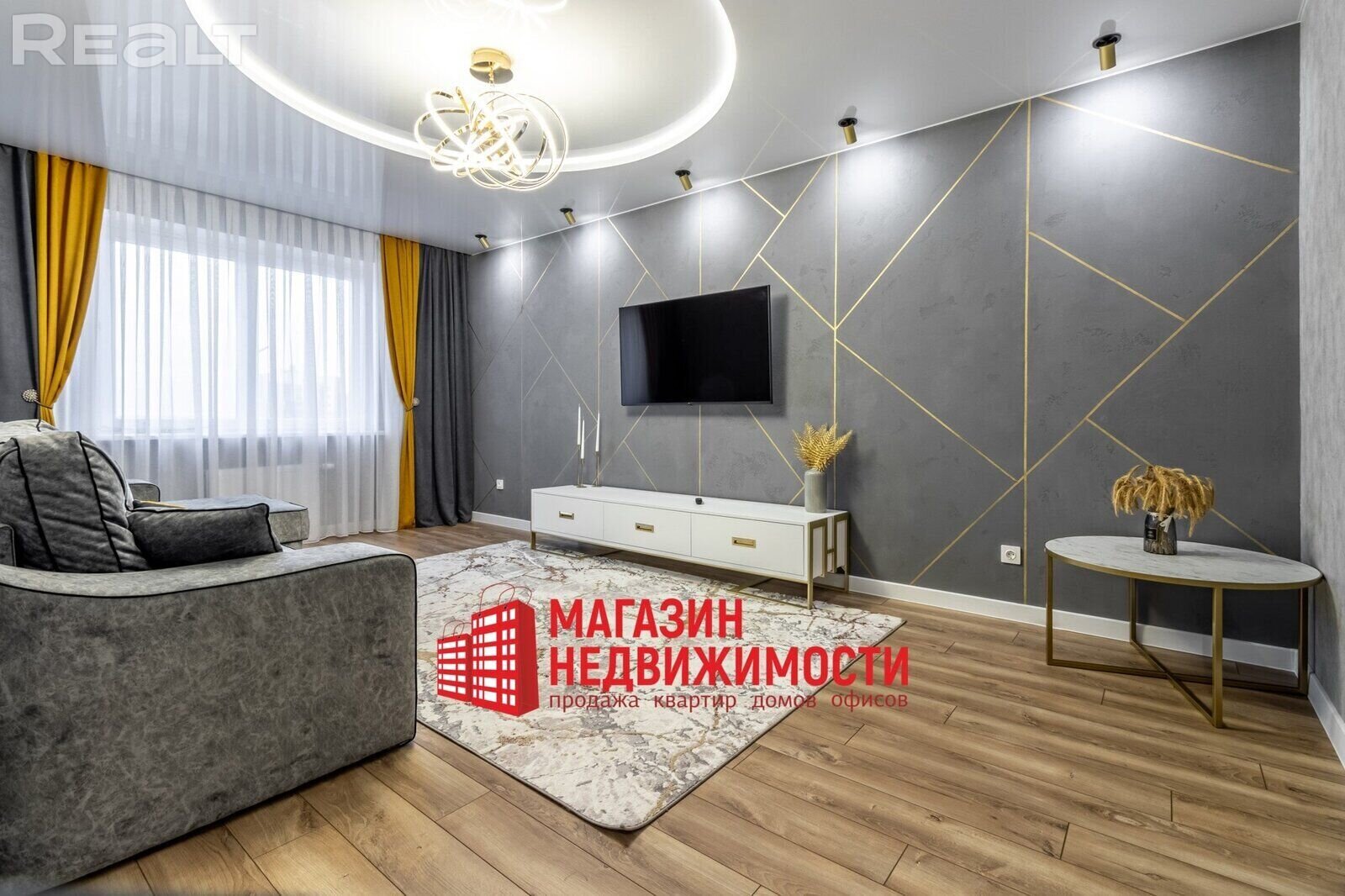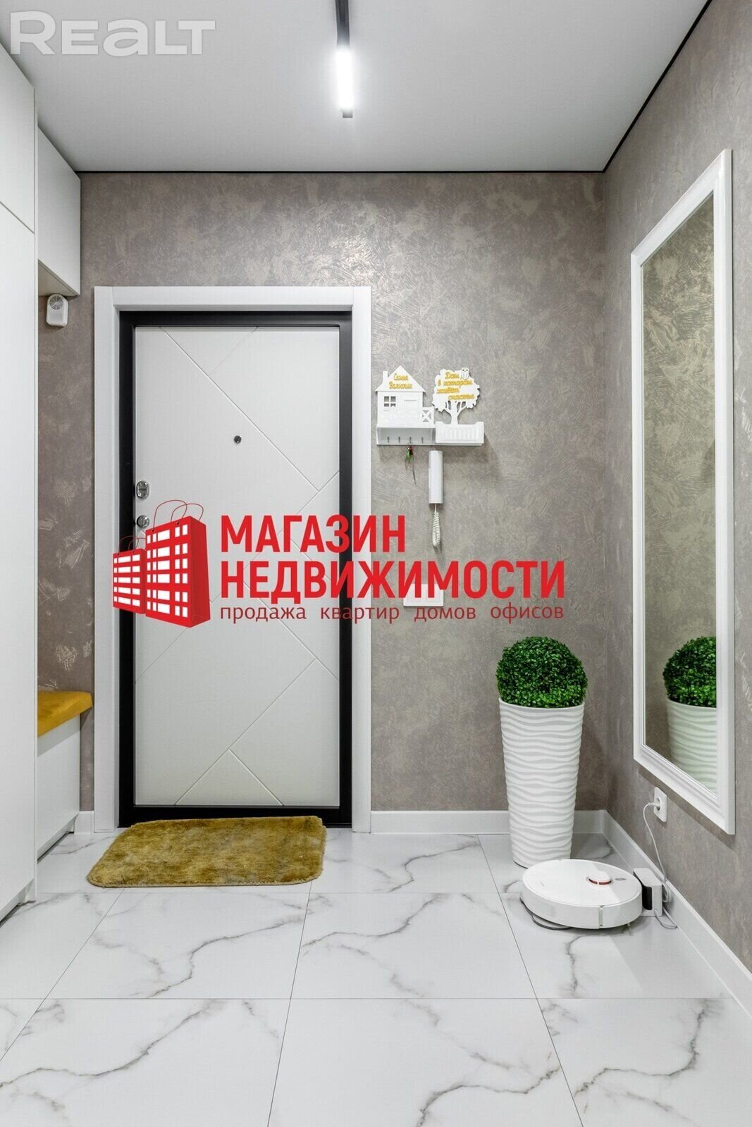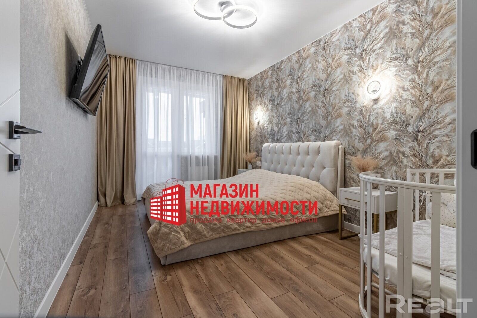 Трохпакаёвую кватэру з дызайнерскім рамонтам на вул. Магістральнай, 14 можна купіць у Гродне. Кватэра прадаецца з мэбляй. У ёй — дэкаратыўная тынкоўка на сценах, уцепленыя балконы, гардэробныя і бытавая тэхніка Bosh.