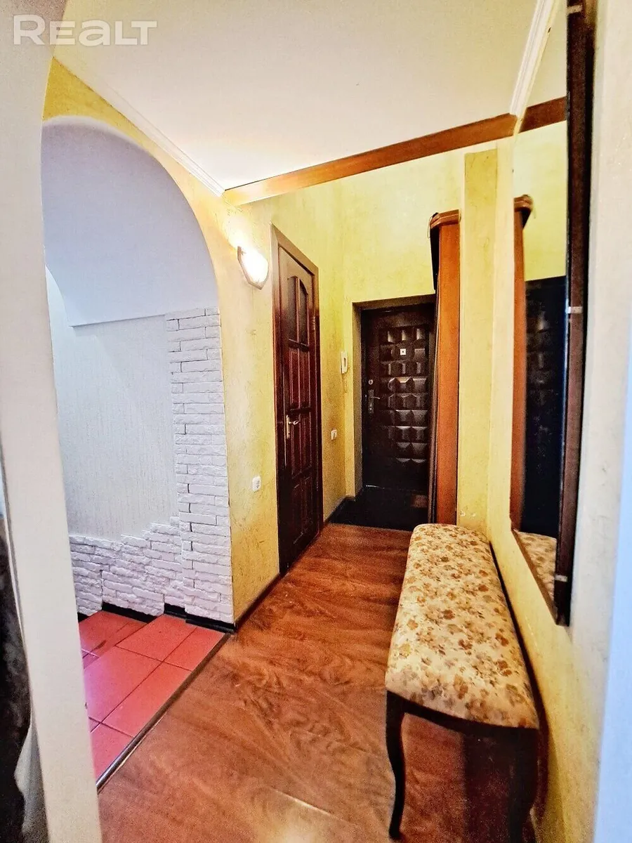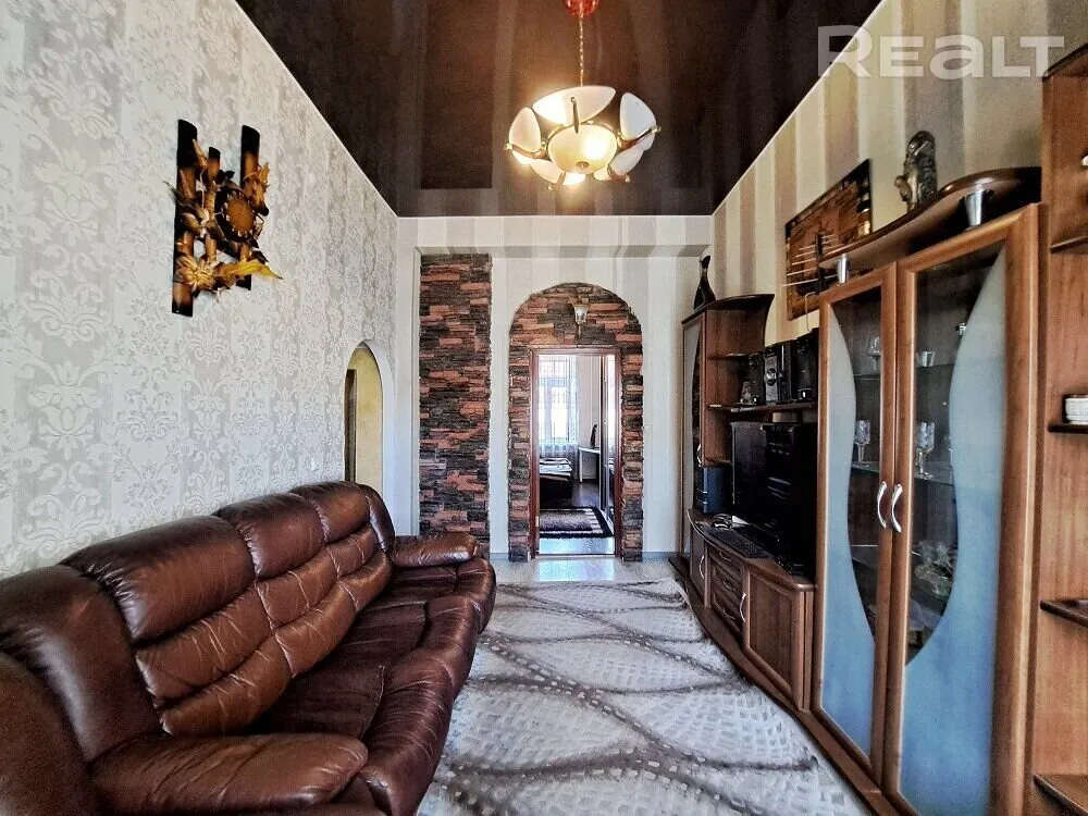 Кватэра знаходзіцца на другім паверсе двухпавярховага цаглянага дома па вул. Сацыялістычная, 52. Агульная плошча – 36,6 м2. Санвузел – сумешчаны. Ёсць падвал. У кватэры зроблены жылы рамонт. На падлозе – ламінат і плітка. Сцены роўныя, паклееныя шпалеры і месцамі аздобленыя дэкаратыўным каменем.