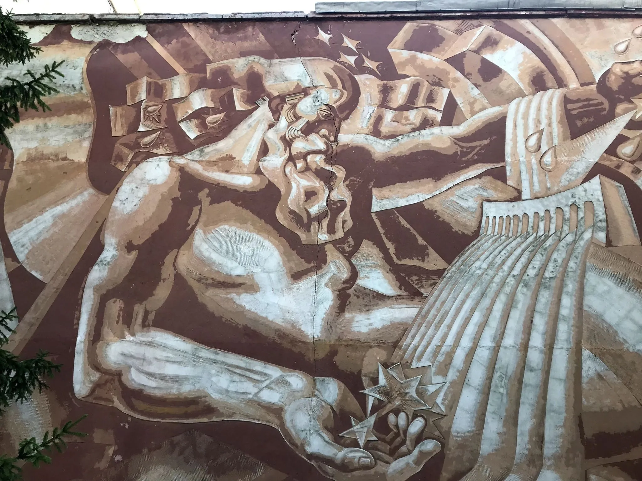 Па будынку былога адміністрацыйнага корпуса “Гранітэкс”, а зараз рынку “Карона”, пайшла трэшчына. На пашкоджанай сцяне знаходзіцца сграфіта “Песня пра Нёман” – адзін з яскравых прыкладаў савецкага манументальнага мастацтва. Гродзенцы б’юць трывогу – мастацкая работа можа пацярпець. Але ўратаваць яе ўсё яшчэ магчыма.