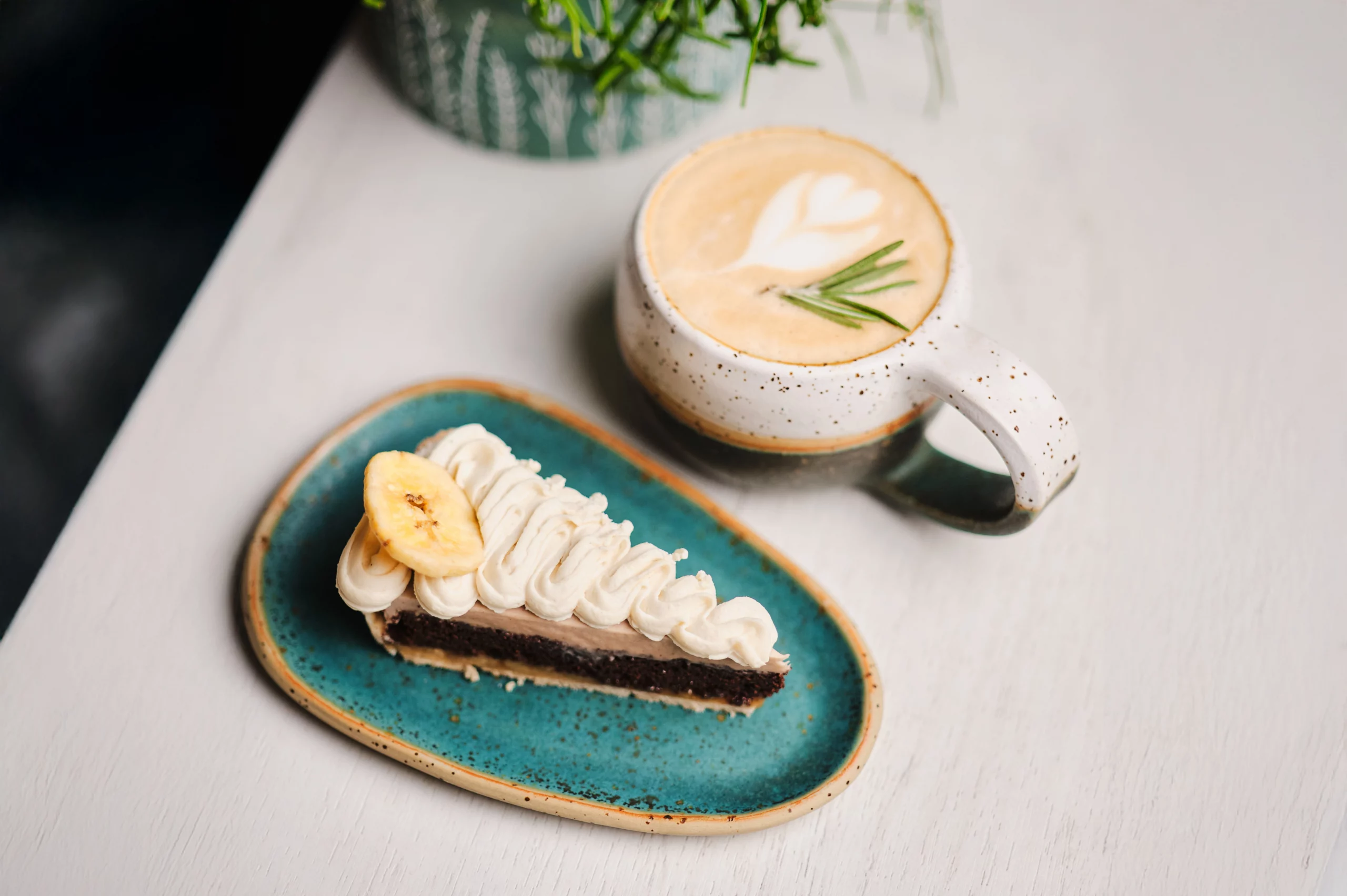 Да Gastrofest.Кава ўстанова падрыхтавала капучына «Яловая карамель» і веганскі тарт з карамеллю і бананам.