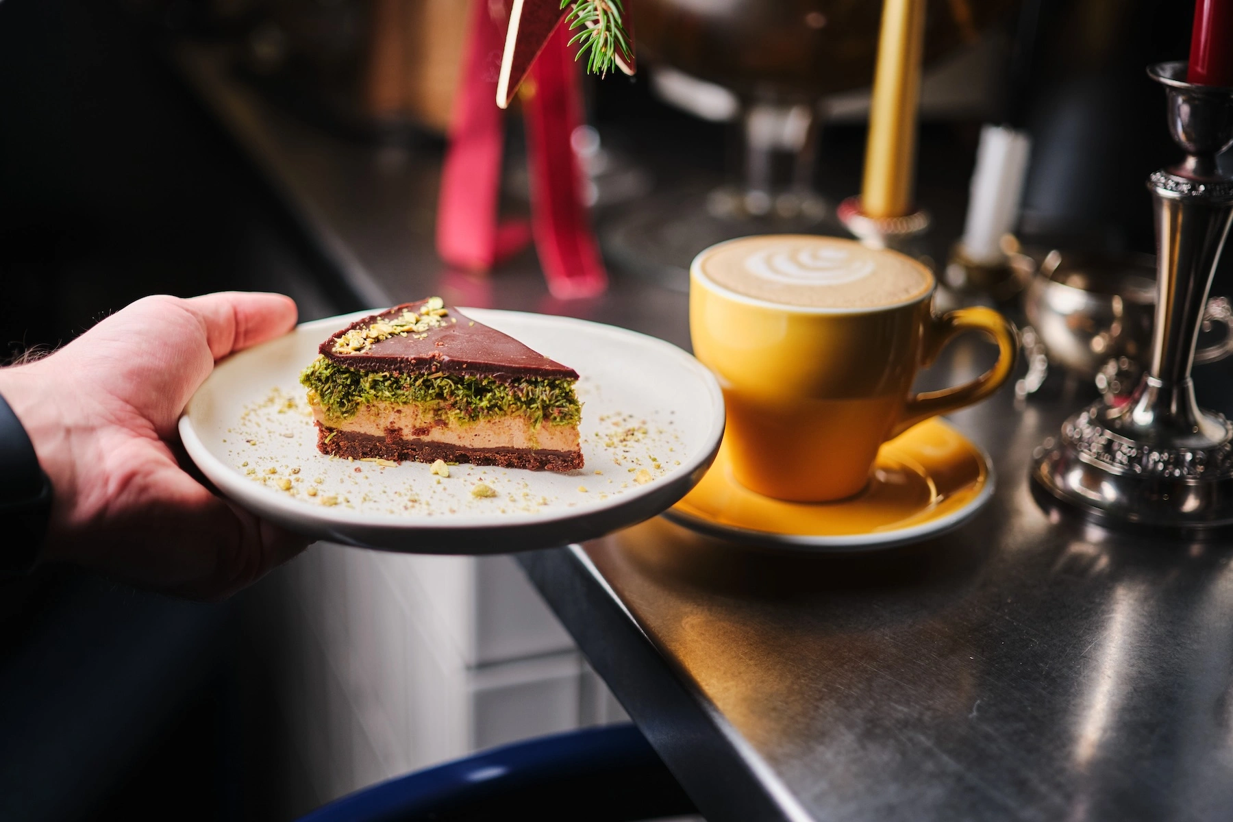 У кавярні можна будзе пачаставацца шакаладна-вішнёвым латэ і фісташкавым тварожнікам з тэстам катаіфі – тым самым, якое дадаюць у дубайскі шакалад.