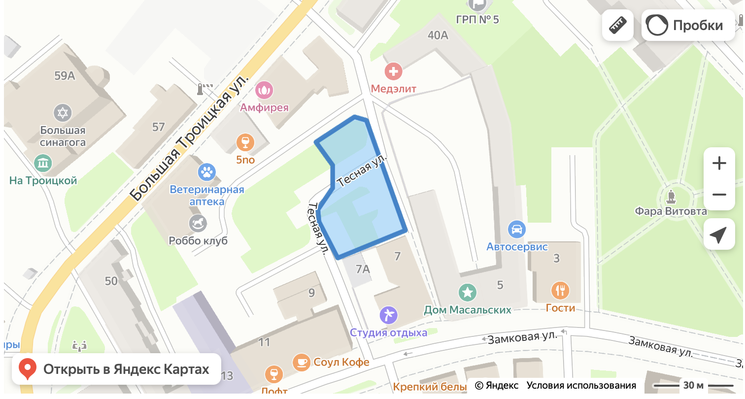 Участак па адрасе Замкавая, 7 выставілі на аўкцыён. Тэрыторыя трапляе ў межы гістарычнага цэнтра горада, які мае статус гісторыка-культурнай каштоўнасці. Згодна з умовамі аўкцыёну, пакупнік зможа пабудаваць на ўчастку аб’ект грамадскага прызначэння.
