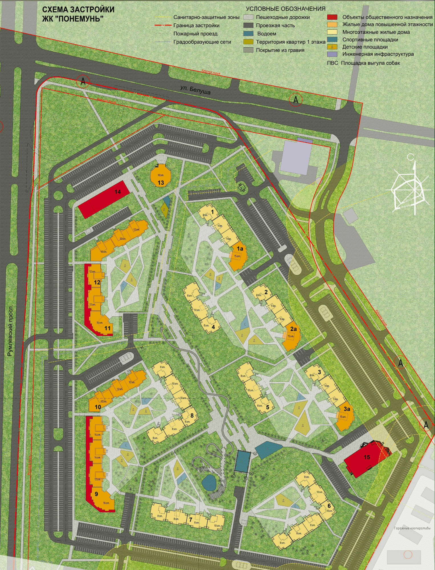 Згодна з праектам, па вул. Панямуньская будуць тры дамы зменнай паверхавасці – 15-8-10 паверхаў. На вуліцы Белуша з’явіцца дом вежавага тыпу на 18 паверхаў. Забудова ўздоўж пр. Румлёўскі фармуецца дамамі зменнай паверхавасці 16-12-14. На першых паверхах прадугледзелі ўбудаваныя грамадскія памяшканні. Усяго з’явіцца 2 тыс. кватэр і паркінгі на больш чым 2 тыс. машын.