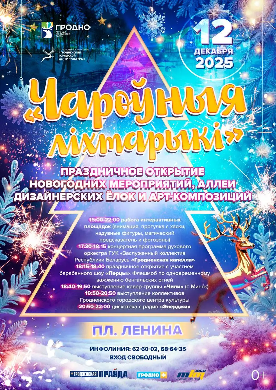 Адкрыццё навагодняга сезона ў Гродне пройдзе 12 снежня. На плошчы Леніна пачнецца свята пад агульнай назвай «Чароўныя ліхтарыкі».