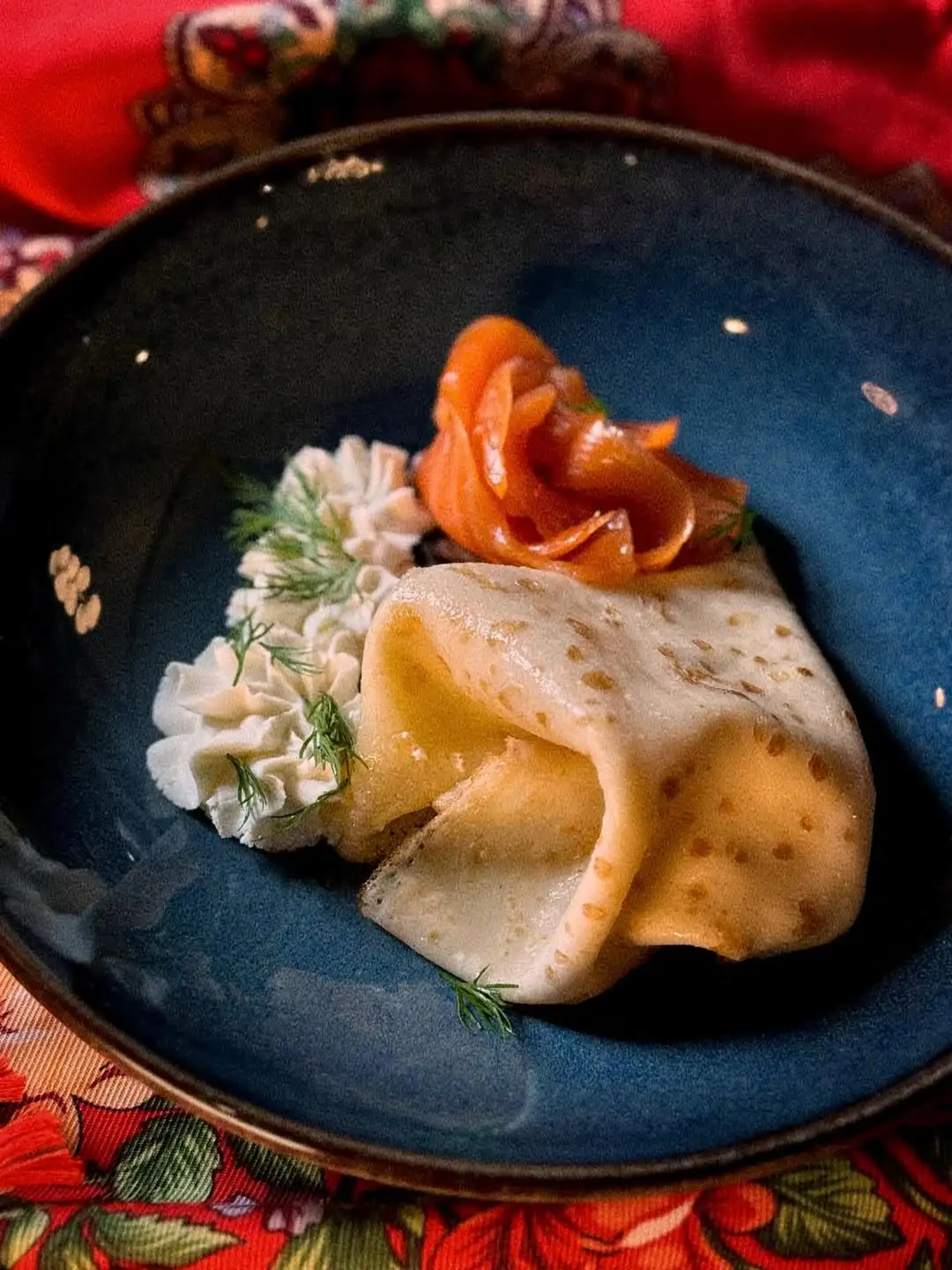 Бістро: бліны з салатай “Цэзар” і халапеньё