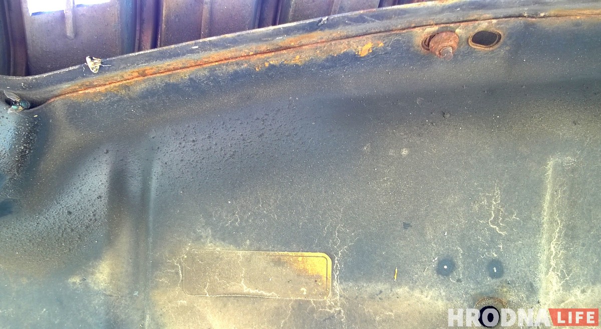 Больш за ўсё карозія не пашкадавала капот. Жукі «палезлі» як звонку, так і з унутранага боку.