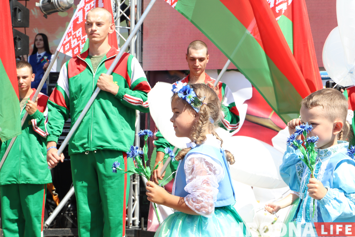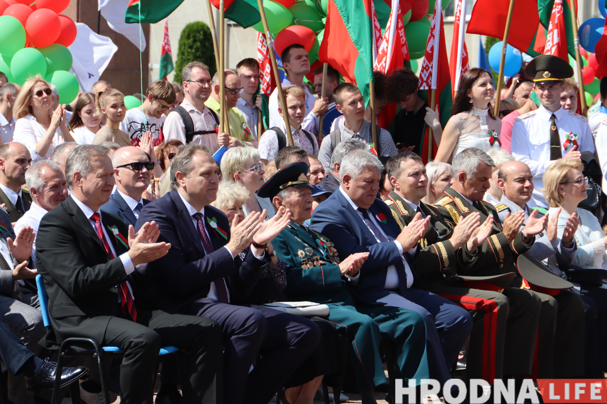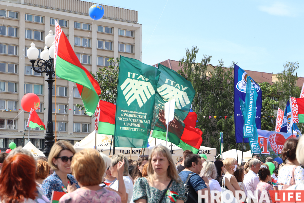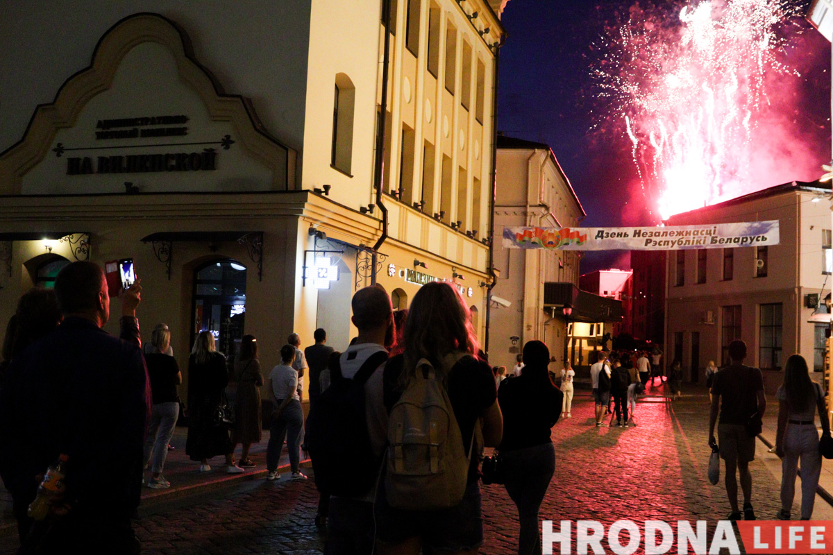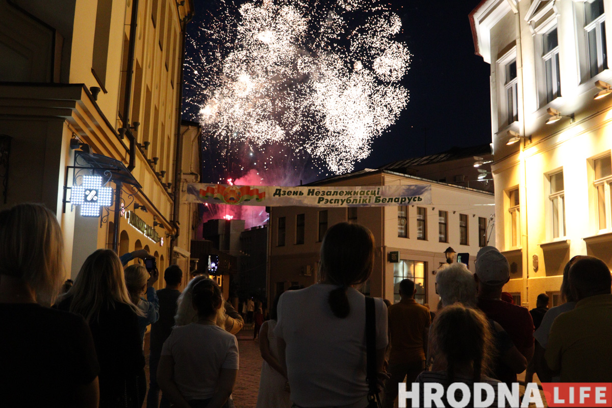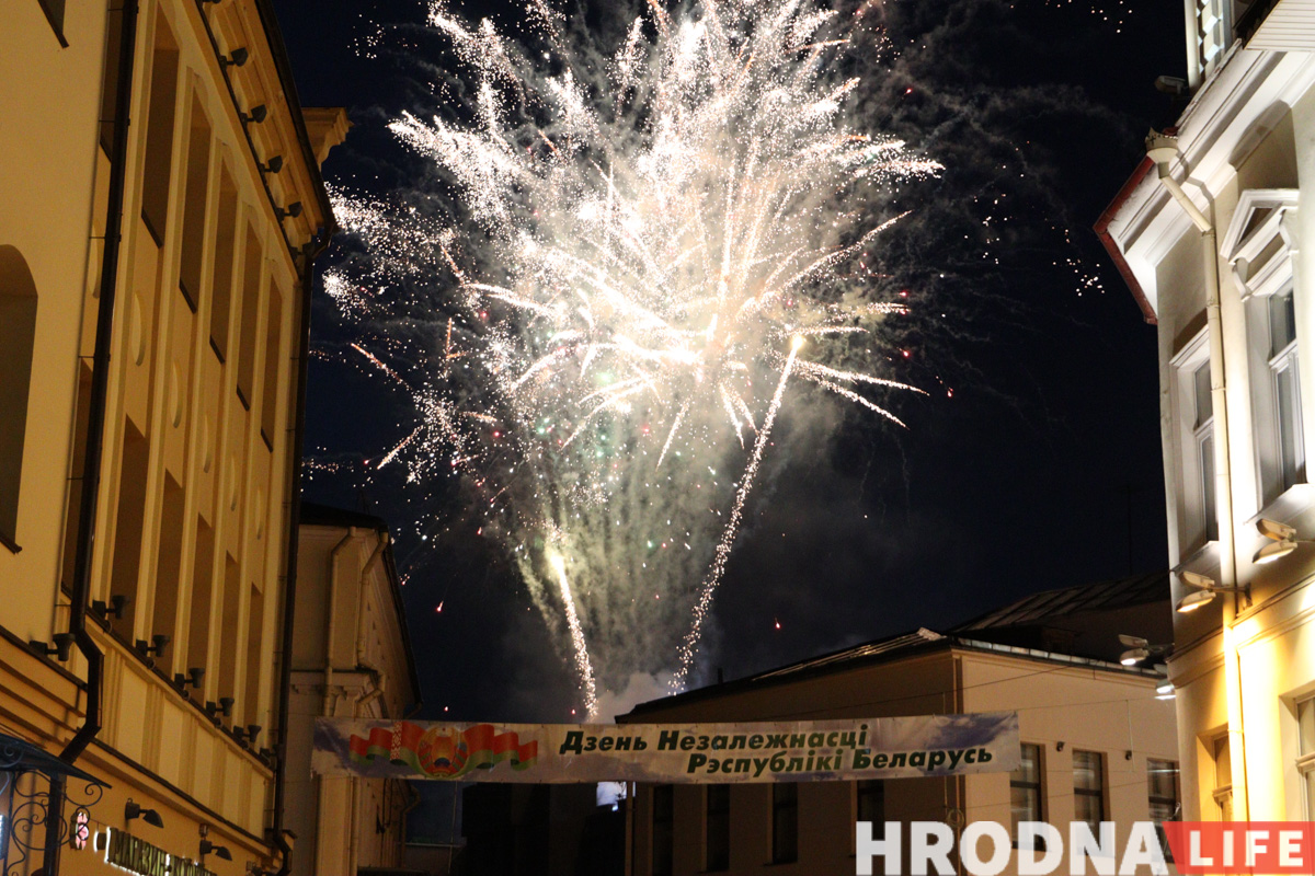 Дзень Незалежнасці ў Гродне пачалі святкаваць з ускладання кветак да вечнага агню ў парку Жылібера і працягнулі канцэртам на плошчы Леніна. Пасля ўрачыстага ўступу большасць удзельнікаў разышліся па іншых месцах. Зноў людна на плошчы стала ўвечары: з даху гарвыканкама запусцілі салют, а на галоўнай сцэне выступалі Тэа і Вольга Рыжыкава.