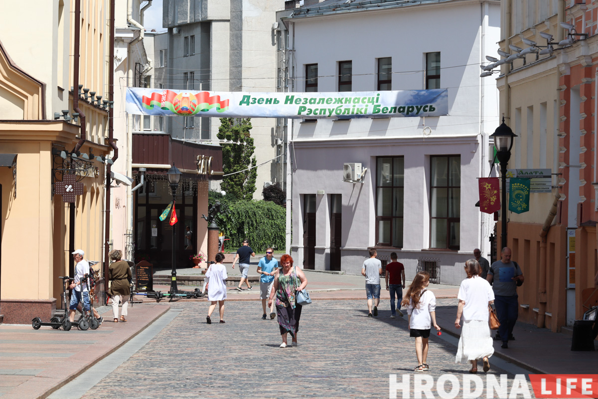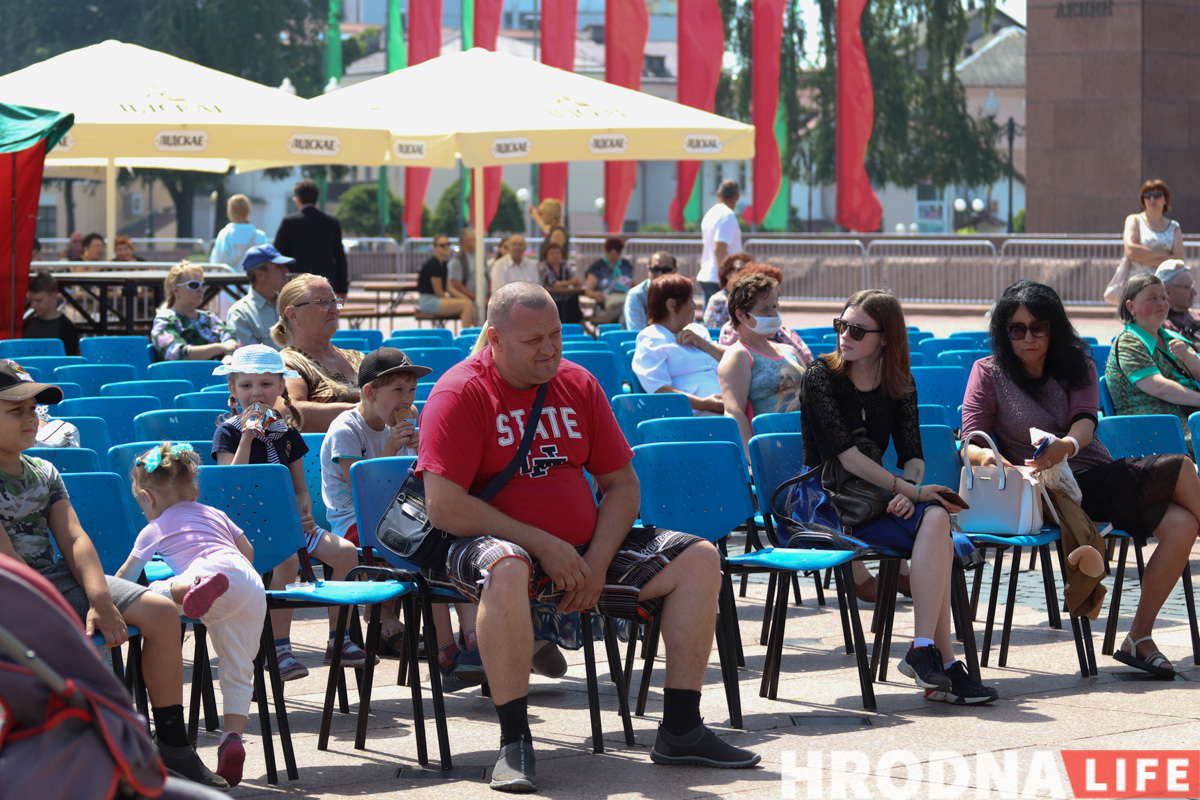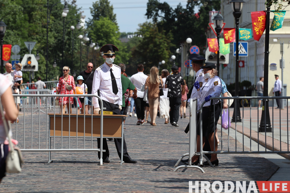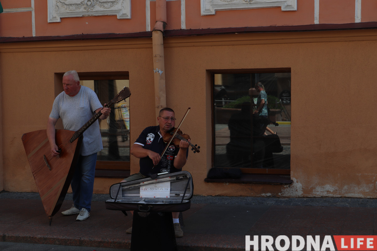 На Савецкай вуліцы і плошчы натоўпу не было, гродзенцы шпацыравалі, як у звычайны выхадны дзень. Атмасферу разбавілі выступы артыстаў абласной філармоніі ў межах праекта “Канцэрты на балконе”.