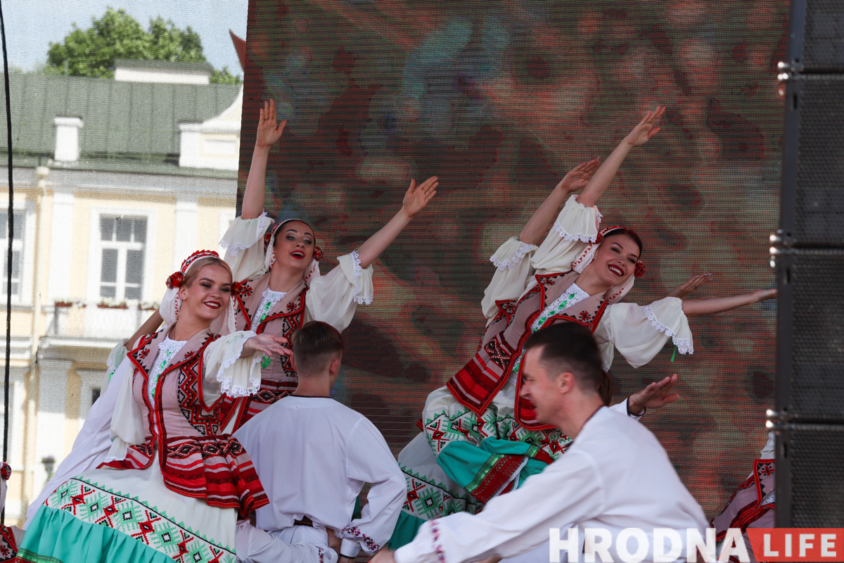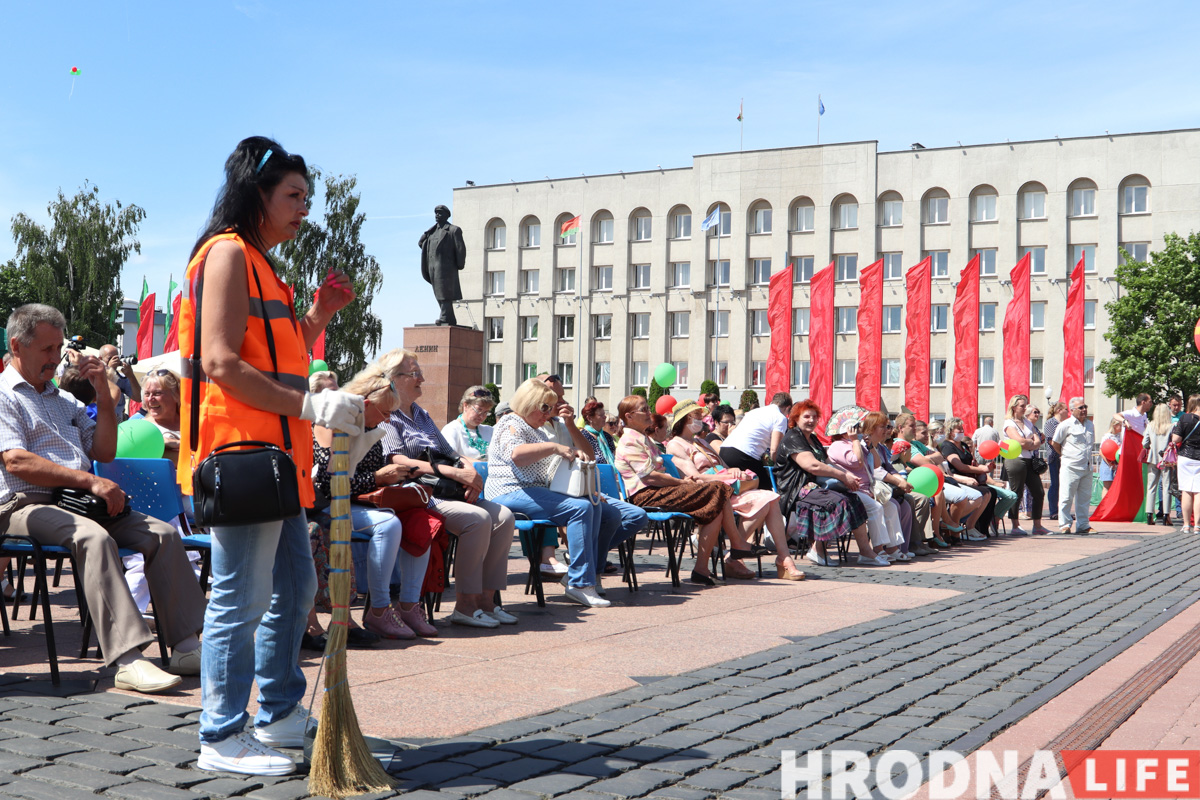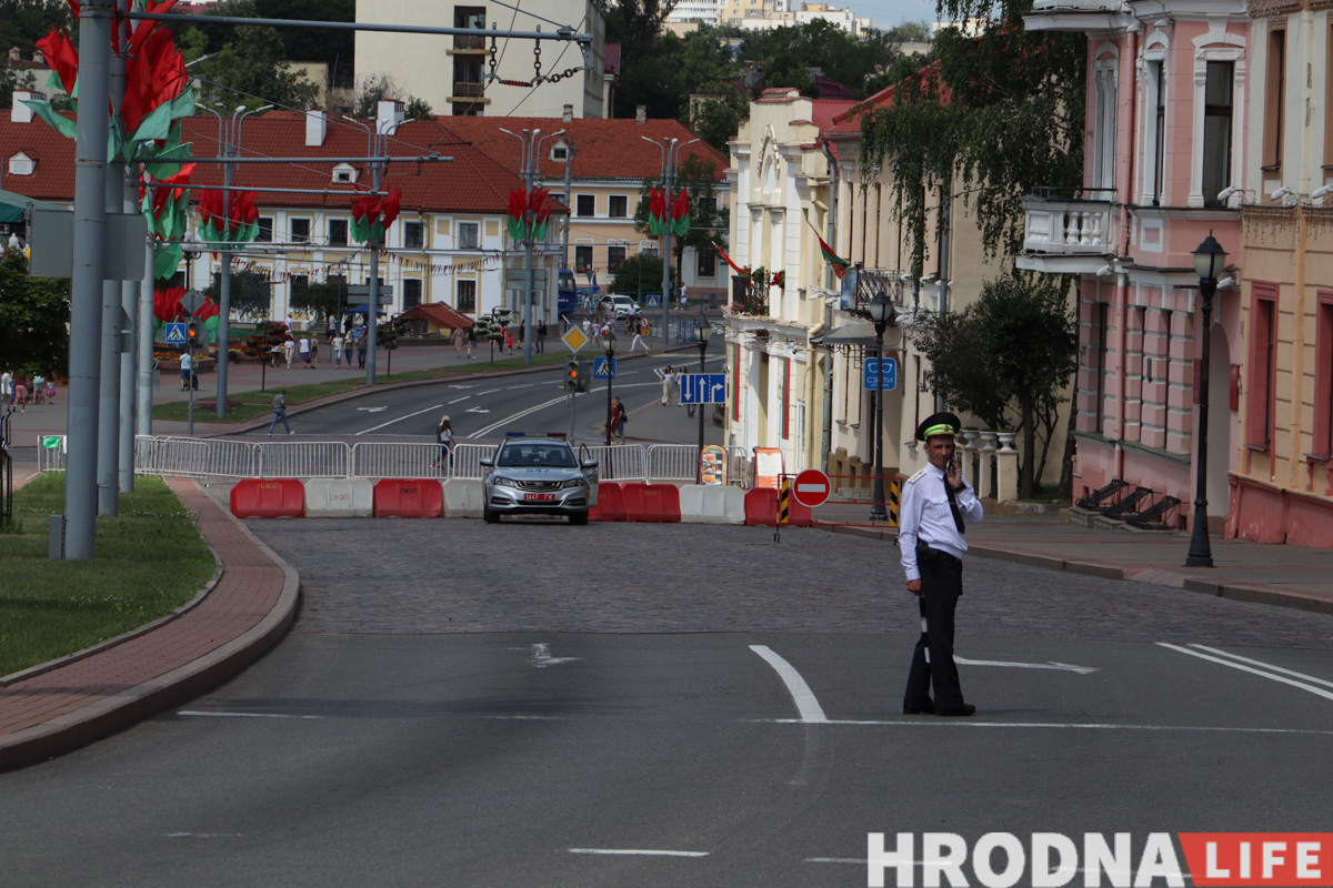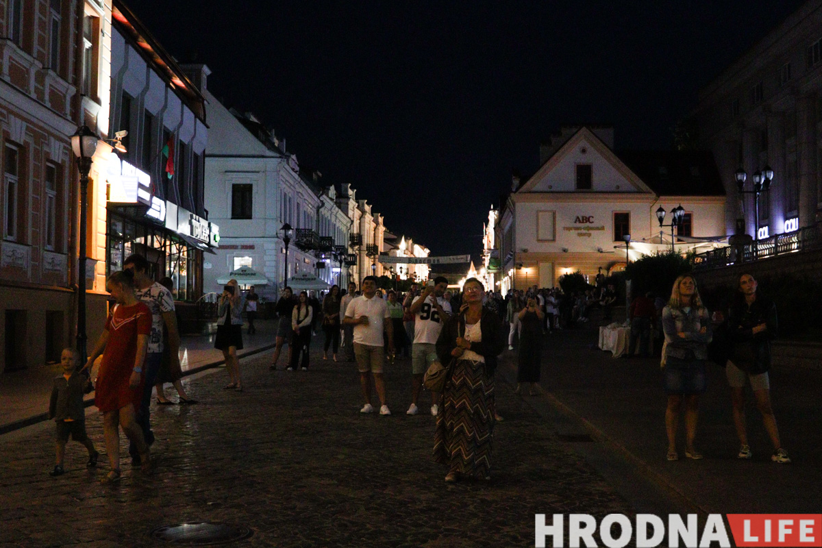На Савецкай вуліцы і плошчы натоўпу не было, гродзенцы шпацыравалі, як у звычайны выхадны дзень. Атмасферу разбавілі выступы артыстаў абласной філармоніі ў межах праекта “Канцэрты на балконе”.
