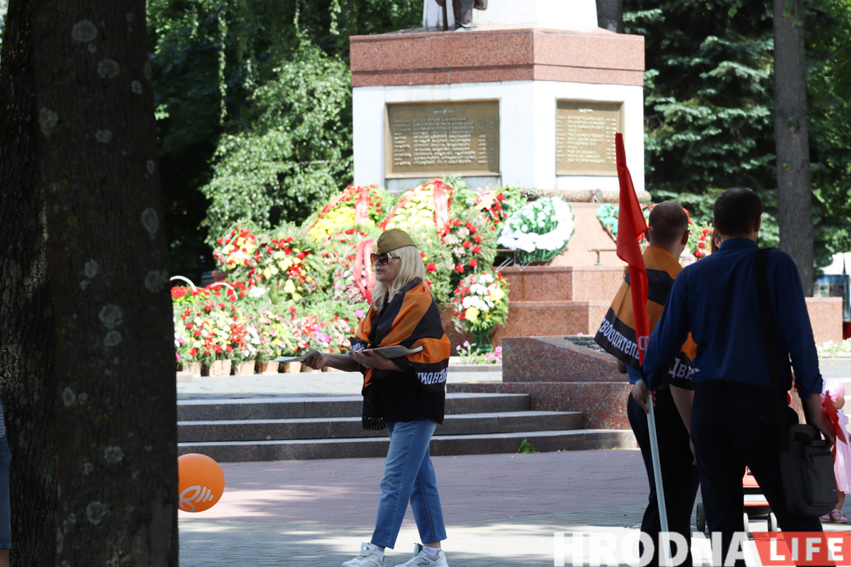 Далей у парку развярнуўся гандаль і разнастайныя забавы. За тэатрам запісвалі ў гурткі па цікаўнасцях, далей усталявалі фотазону з матрошкамі. Асобную зону насупраць тэатра лялек заняў гродзенскі заапарк. Сярод прапановаў – шпацыр на поні і фота са змяёй, можна было паглядзець на птушак у клетках і пагладзіць трусікаў. Блізу вечнага агня прадстаўнікі НОД (Нацыянальна-вызваленчы рух – расейскае нацыяналістычнае палітычнае аб’яднанне, якое хоча адрадзіць СССР) раздавалі мінакам свае газеты.