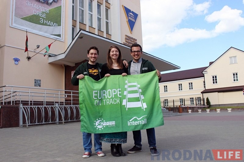 “Europe on Track” гэта моладзевы праект, у рамках якога шасцёра маладых людзей, падзяліўшыся на дзве каманды, праязджаюць усю Еўропу за адзін месяц. Гродна ўпершыню трапіў у маршрут праекта: сюды 7 мая прыехала каманда з трох чалавек пад назвай “Blue team”: Хорхе з Іспаніі, Рут з Ісландыі і Дзіма з Расіі. Усе члены каманды з’яўляюцца маладымі лідарамі, падарожнікамі, а таксама вопытнымі спікерамі з актыўнай жыццёвай пазіцыяй.
