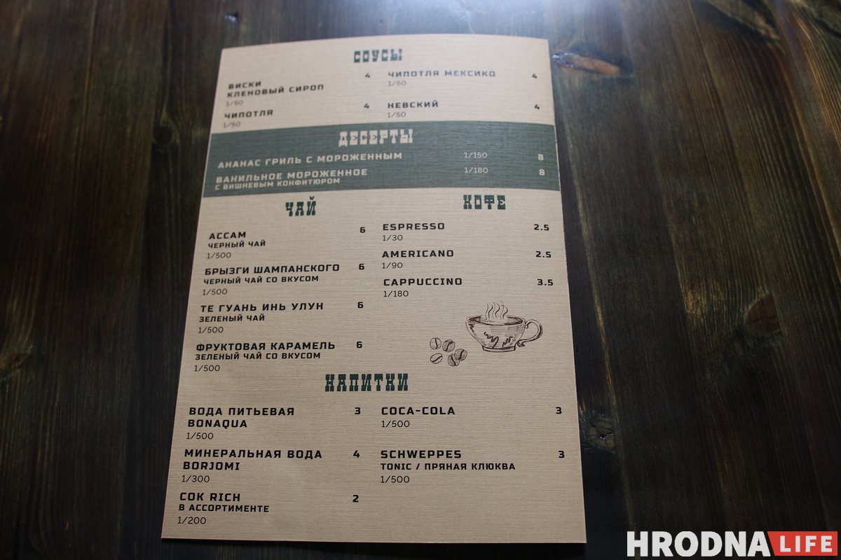 В меню есть авторские разработки: фирменные соусы, блюда и напитки. В меню еще будут вноситься корректировки. Пока владельцы смотрят, что больше пользуется спросом.