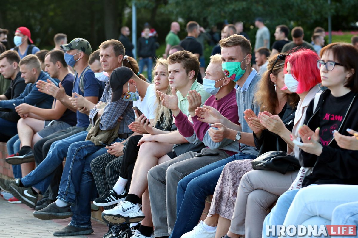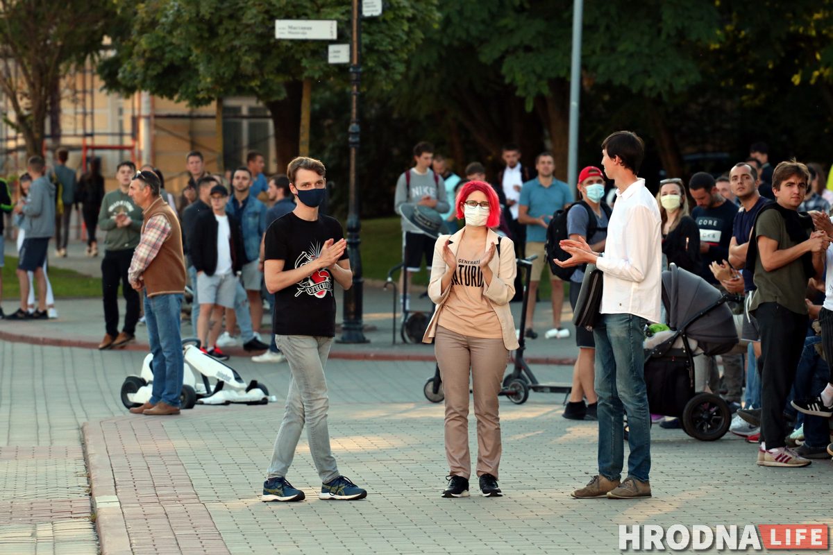 Каля трохсот гродзенцаў выйшлі ўвечары 14 ліпеня на Савецкую плошчу ў Гродне, каб паказаць сваю незадаволенасць у сувязі з адмовай ЦВК у рэгістрацыі кандыдатамі ў прэзідэнты Віктара Бабарыка і Валерыя Цапкала.