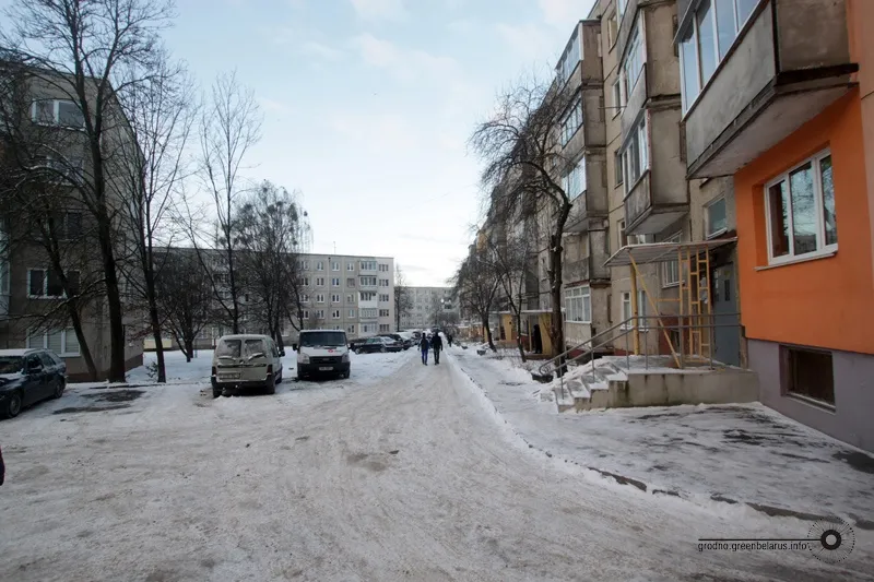 Адметны 13-павярховік, падобнага вы не сустрэнеце больш нідзе ў Гродне. На мой погляд, адзін з найбольш сімпатычных жылых дамоў эпохі застою ў нашым горадзе. Поруч каскад фантанчыкаў, праўда, ніхто і не ўспомніць, калі яны працавалі.
