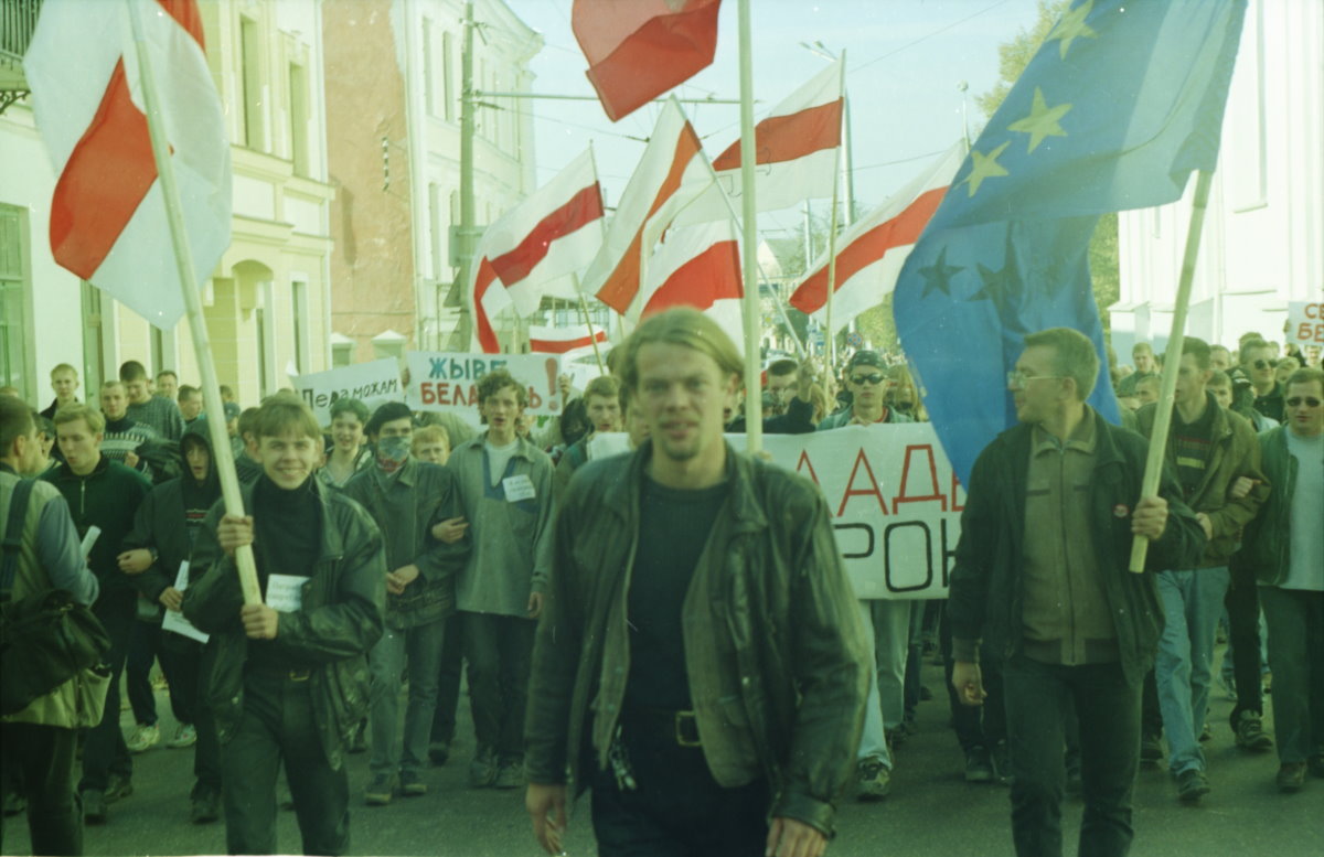 В 2000-м году протесты в Гродно начинаются в марте со Дня Воли на площади Советской. Как писала газета “Пагоня”, в том году чуть не дошло до стычек демонстрантов с милицией. Только благодаря решительным действиям организаторов праздника удалось избежать кровавой бойни. Демонстранты обошли милицию на площади и пошли в Коложский парк, где провели митинг. Кульминацией стало поднятие на флагштоках двух флагов: бело-красно-белого и флага ЕС.