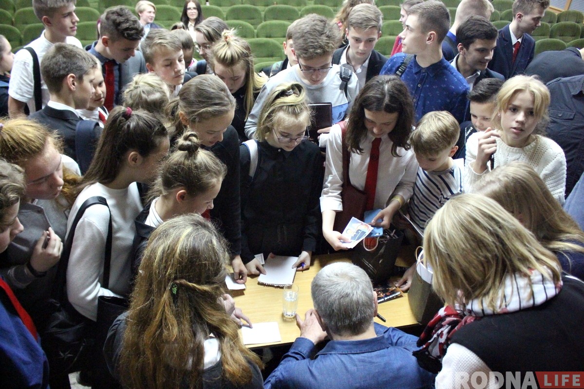 Сустрэча з Іванам Ядэшкам праходзіла ў Гродзенскай гарадской гімназіі. Паслухаць баскетбаліста сабралася поўная актавая зала.