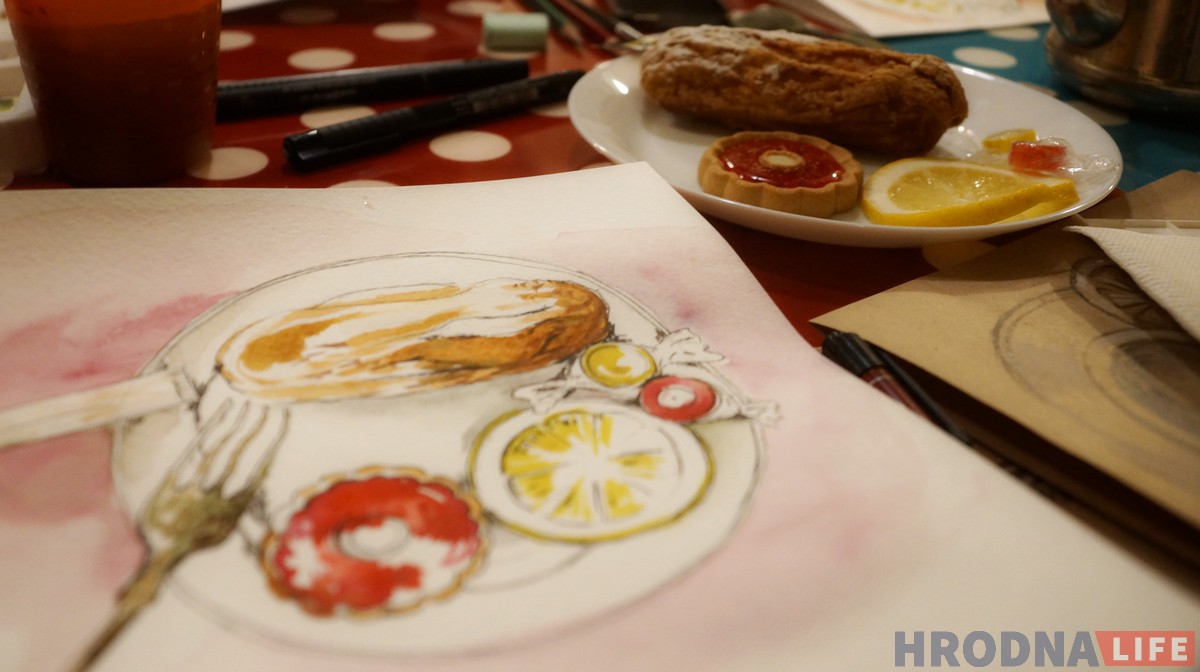 Першымі нашу ініцыятыву падтрымалі навучэнкі мастацкай студыі Кацярыны Забелінай, што зараз пад кіраўніцтвам мастачкі вучацца рабіць скетчы – хуткія замалёўкі.
