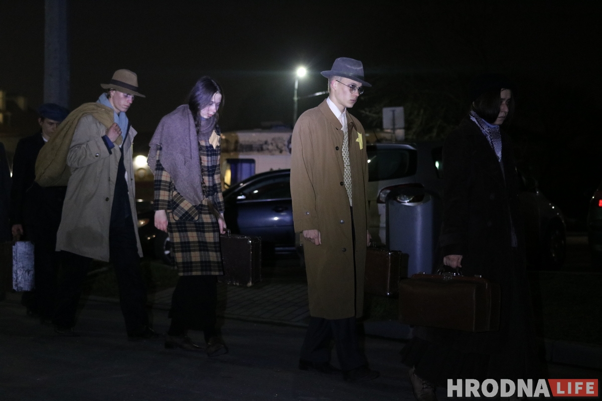 У міжнародны Дзень памяці ахвяраў Халакосту акцёры фрык-тэатра “Гексаген” прайшлі ў касцюмах вязняў гета па цэнтры Гродна. Акцыю арганізавалі, каб нагадаць гараджанам пра загінуўшых у лагерах смерці суайчынніках.
