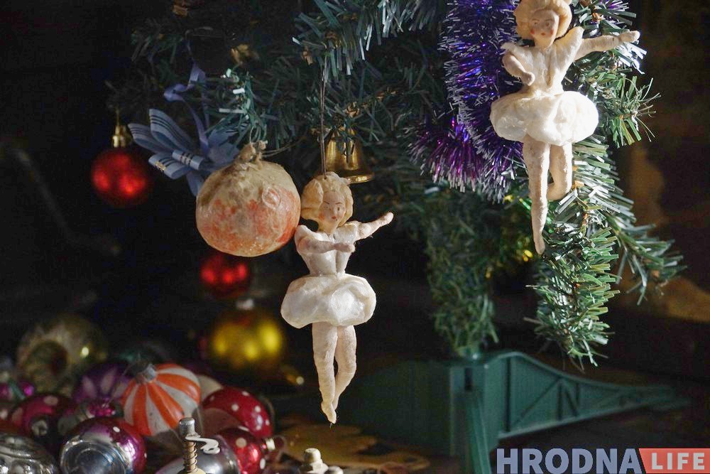 “Тут цацкі савецкія, з чырвонымі зоркамі, недзе з пачатку саракавых. І шкляны парашут з тых часоў. Даволі рэдка такія сустрэнеш зараз . У мяне іх цэлая скрынка. Чые? А не памятаю ўжо. Тут і цёткі мае жылі, і дзядзькі, што ад іх пазаставалася, што людзі прынеслі”, – Януш пачынае расповед пра ёлачныя ўпрыгожванні ў першым пакойчыку музея.