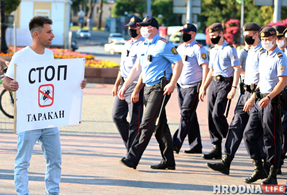 Хлопец выйшаў у цэнтр горада з плакатам і прастаяў менш за хвіліну – яго амаль адразу затрымалі. У ізалятары часовага ўтрымання (ІЧУ) на Гая гродзенец прабыў трое сутак і атрымаў штраф – 20 базавых. Сваю гісторыю Аляксандр распавёў Hrodna.life.